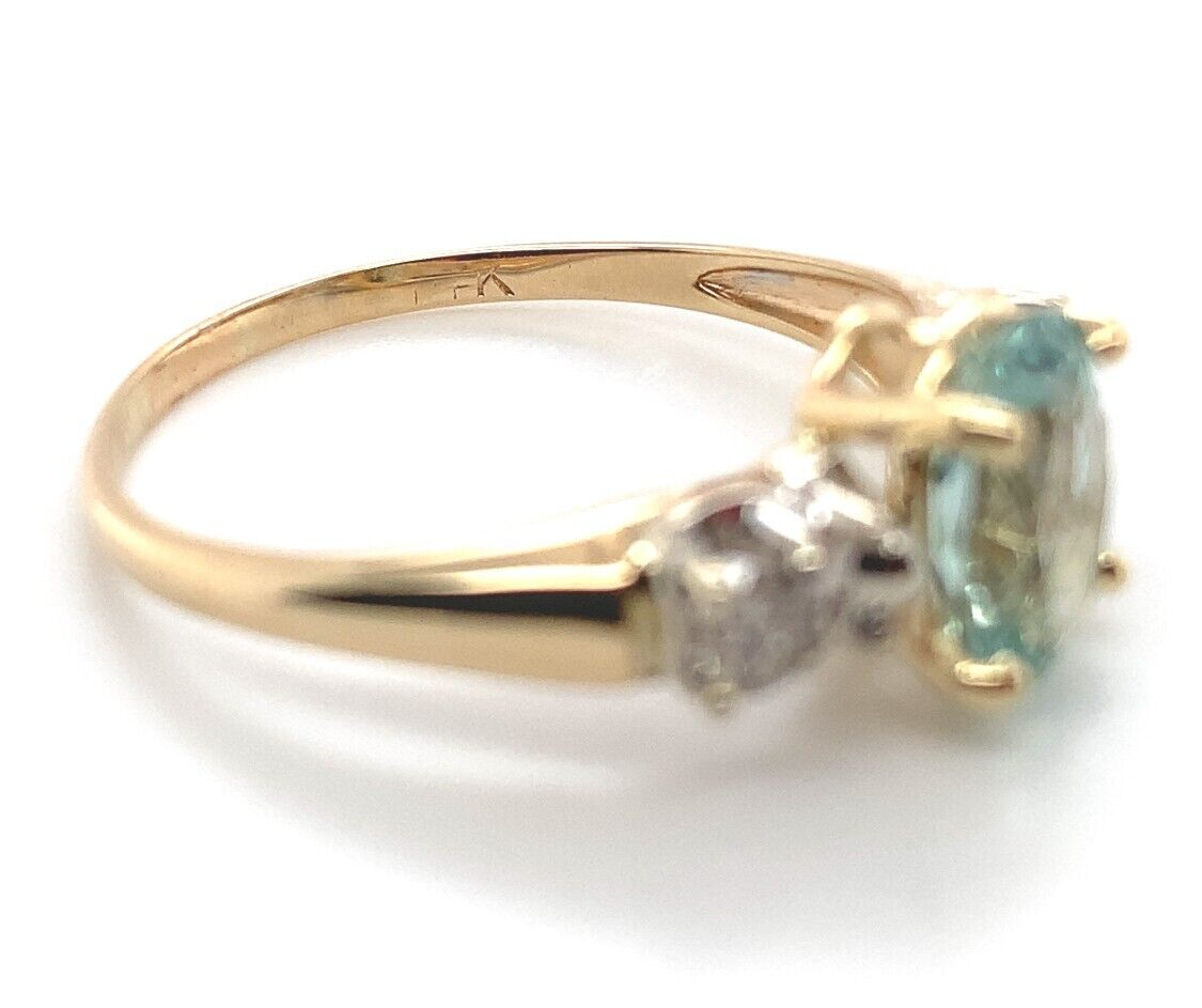 - 14k Yellow Gold 1.31 Carat Genuine Natural Aquamarine and Diamond Ring (#J6930)