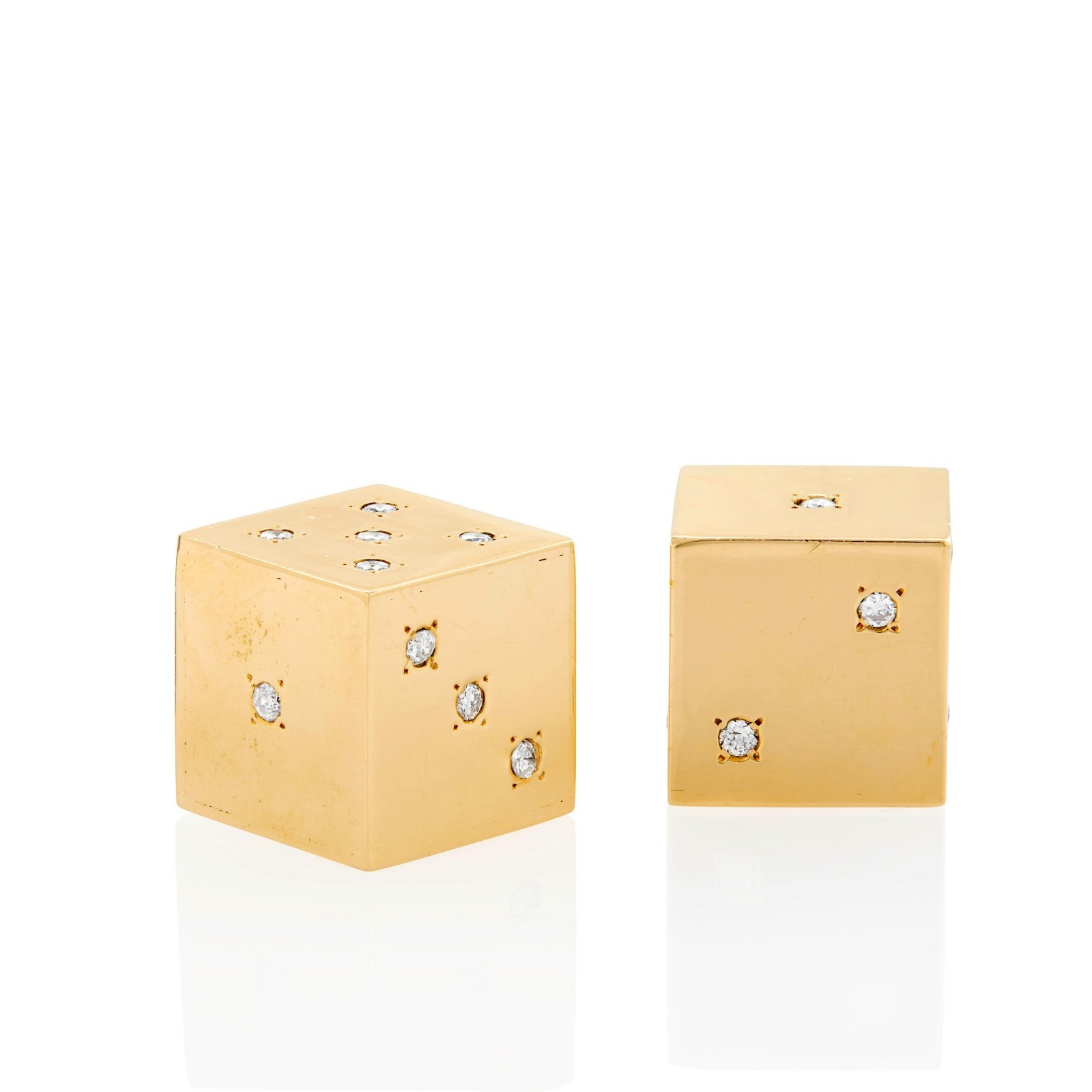 Primary image for 14k or Jaune Paire De Dés W/Environ 2 CT Diamants Pépins Nombre Marqueurs
