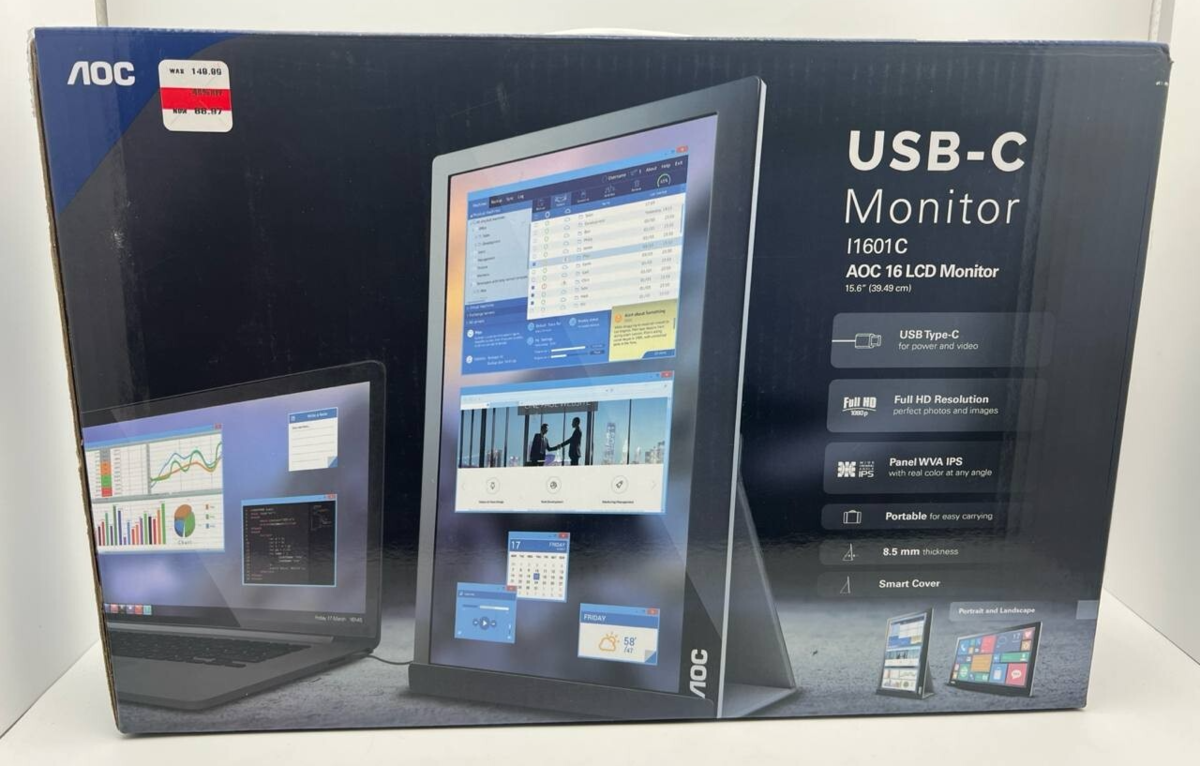Item includes: x1 AOC I1601C 15.6" USB-C Portable Monitor- Usbc Cable and stand