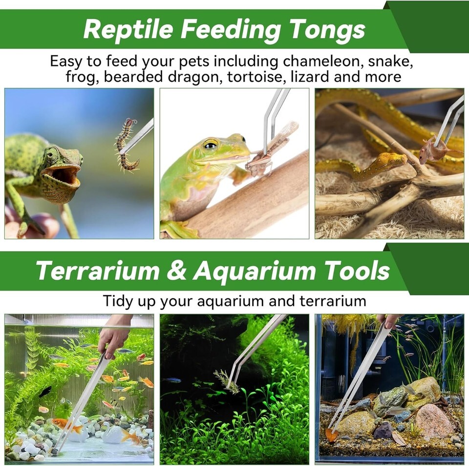 Multi-Functionality: Ideal for aquascaping and terrarium maintenance, these tweezers can easily grasp leaves and snails. They are perfect for feeding various reptiles, including chameleons, snakes, frogs, bearded dragons, and more.