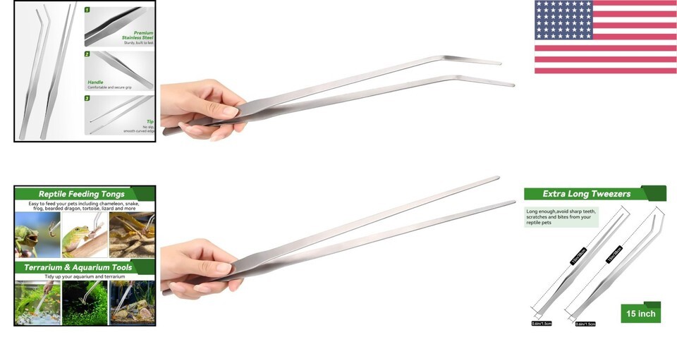 Extra Long 15-Inch Length: At 15 inches (38cm), these tweezers allow for comfortable handling, keeping your hands a safe distance from sharp teeth and potential scratches while feeding your pets.