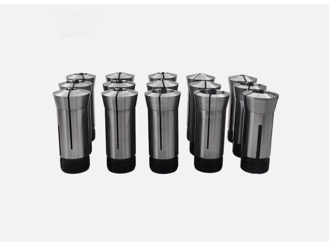 Sizes: 1/8" ,3/16", 1/4", 5/16", 3/8", 7/16",1/2" ,9/16" ,5/8" ,11/16", 3/4" ,13/16", 7/8", 15/16" , 1" Hardened and precision ground The TIR 0.0006" OD thread: 1-1/4"-20 ID thread: 1" -24 Round Collet