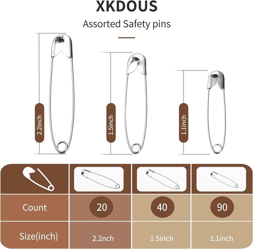 Elevate your sewing and crafting experience with our 150 Pcs Assorted Safety Pins. Designed with precision, these heavy-duty pins offer not just functionality but a touch of elegance with their silver finish. You'll find the perfect size for any task among the small and large pins, ensuring versatility at your fingertips.