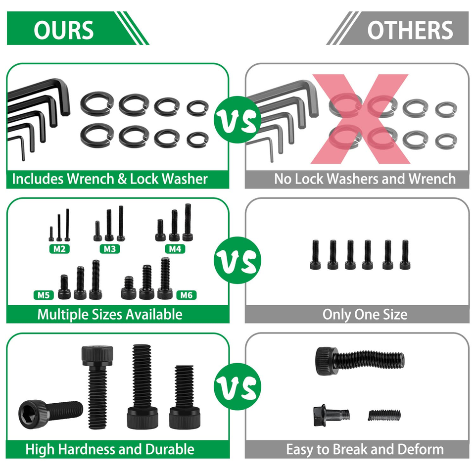 - 1500PCS M2 M3 M4 M5 M6 Screw Kit Hex Socket Cap Bolts Nuts Washers Alloy Steel