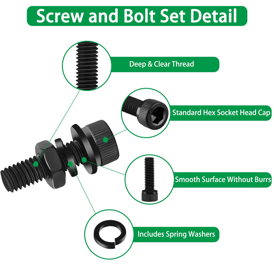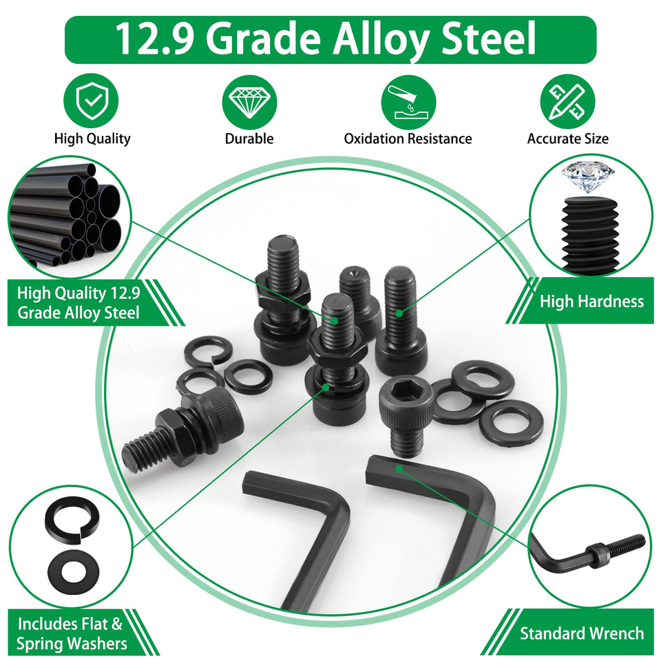 ? High-Quality Alloy Steel ? Made of premium 12.9 grade alloy steel for exceptional hardness, strength, and corrosion resistance. Designed to withstand heat, cold, and humidity with superior oxidation resistance for long-term use.