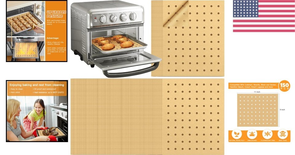 150pcs Air Fryer Disposable Parchment Paper Liners - Perfect for Crispy Cooking ? ? ? ? ? ? ? ? ? ? ? ? ? ? ? ? ? ? 150pcs Air Fryer Disposable Parchment Paper Liners Perfect for Crispy Cooking Features: Healthy and Crisp - Perforated holes allow heat to circulate evenly without the need for added oil. Precut Size - Each liner measures 9x11 inches, ideal for most air fryers including Cuisinart, Breville, Black and Decker, Hamilton Beach, Cosori, and Emeril Lagasse. Heat Resistance - Designed to withstand temperatures from -68F to 450F. Avoid using during preheat mode for optimal results. Material - Made from food-grade wood pulp with double-sided silicone oil coating, offering a non-stick, waterproof, and easy-to-clean experience. Multi-Purpose - Versatile usage in air fryers, microwaves, and ovens for baking, grilling, frying, or serving food. Benefits: Tasty and crispy results, thanks to the unique perforated design with 80 holes enhancing heat circulation. wood pulp composition ensures durability with a thickness of 45gsm, oil-proof and waterproof. Compatible with virtually all air fryers and toaster ovens on the market, simplifying your meal preparation. Saves time and effort on cleanup, preventing residues and oil stains from affecting your appliance. Warm Tips: Always ensure food covers at least 2/3 of the parchment to prevent flying away or burning. Maximum heat resistance up to 450F and max heating time of 45 minutes for best performance. Service: Our commitment to customer satisfaction is paramount. Each purchase comes with 24 hours email support for any inquiries and a 180-day without reason. Why choose our Air Fryer Parchment Paper Liners? Upgrade your cooking experience with our 150pcs Air Fryer Disposable Parchment Paper Liners. Enjoy healthier, crispier meals while effortlessly keeping your air fryer clean. With their thoughtful design and durable material, these liners make cooking a delightful and hassle-free affair. Elevate your culinary adventures and order today! Shipping Free Fast Shipping - We offer free shipping to most of the USA with a normal delivery time of 3-7 days. However, due to the current situation, additional delivery time (up to 3 weeks) may be required for some items. Alternative Carriers - We may use alternative carriers (e.g. USPS, FedEx, UPS, etc.) to ensure your package arrives safely and on time. Due to the use of multiple carriers, we are unable to provide a tracking number automatically. Handling Time - Orders are processed and shipped within 1-2 business days of receiving cleared payment. Shipping Restrictions - Shipping to Alaska, Hawaii, Puerto Rico, Guam, and other US territories may incur shipping charges or delivery restrictions. Please contact us before ordering, or your order can be refunded/cancelled. State Restrictions - There may be restrictions based on your state of purchase. For example, certain items may not be shipped to California due to state regulations. Contact for Tracking Updates - If you require tracking updates or have any concerns about the delivery of your order, please feel free to contact us, and we will be happy to assist you. Return 30-Day Hassle-Free Returns - We want you to be completely satisfied with your purchase. If you are not, you can return the item within 30 days of receiving it for a full refund or exchange. Easy Return Process - To start a return, simply contact us and we will provide you with a prepaid return shipping label and detailed instructions. Restocking Fee - There are no restocking fees for returns. However, the buyer is responsible for return shipping costs if the return is not due to a seller's error. Refund Processing Time - Refunds will be processed within 5 business days of receiving the returned item in its condition. Payment We accept all major credit cards, PayPal, and Apple Pay for your convenience. Your payment information is secure and encrypted to ensure a safe and seamless transaction. Please complete your payment within 3 days of purchase to avoid any delays in shipping. Feedback Your feedback is extremely important to us. We strive to provide the best products and customer service possible. If you are satisfied with your purchase, please take a moment to leave us a positive review. If you have any concerns or issues with your order, please contact us before leaving negative feedback. We are committed to resolving any problems and ensuring your satisfaction. Contact Us If you have any questions or concerns, please feel free to out to our customer support team. You can contact us through the messaging system. We are available Monday to Friday, 9:00 am to 5:00 pm EST, and we will do our best to respond to your inquiry within 24 hours. Buy it now and enjoy a pleasant shopping experience! Model: Parchment Unit Quantity: 150 pcs Set Includes: Parchment Paper Type of Oven: Electric,Gas,Microwave Features: Easy Clean,Easy to Clean,Non-Stick,Heat Resistance,Oil-Proof,Water-Proof Color: Unbleached Material: Parchment Paper Shape: Rectangle Type: Parchment Paper Surface Coating: Silicone Item Depth: 0.5 in Item Diameter: 9 in Number of Items in Set: One-Piece Heat Resistance: 450F Item Weight: Less than 2 lbs Unit Type: oz Care Instructions: Hand Wash Only