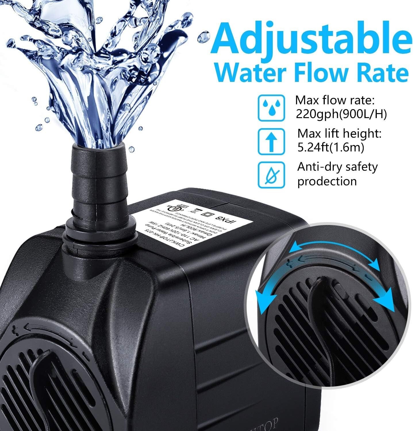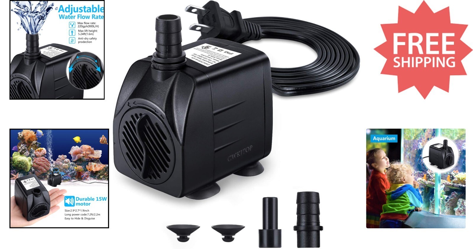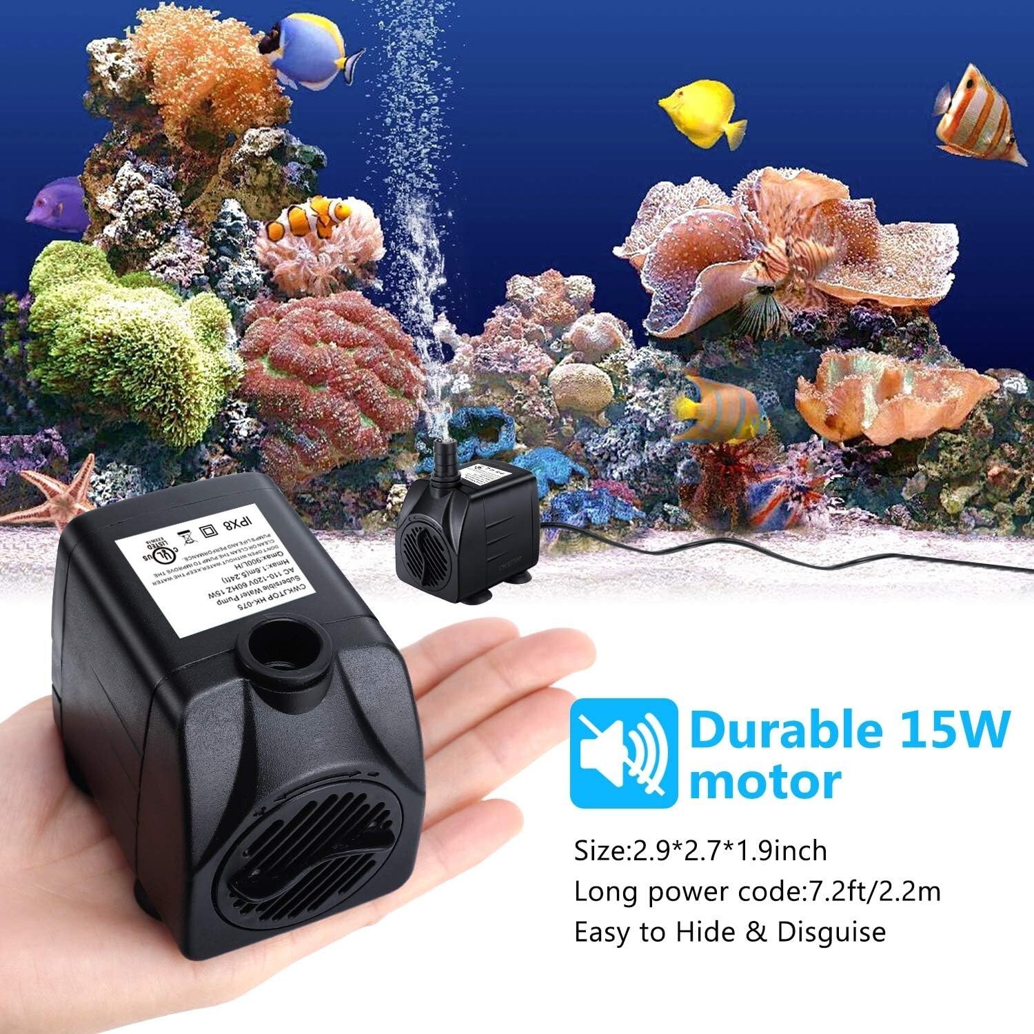 15W Efficient Fountain Pump for Aquariums Ponds - Adjustable Flow 7.2ft Cord
