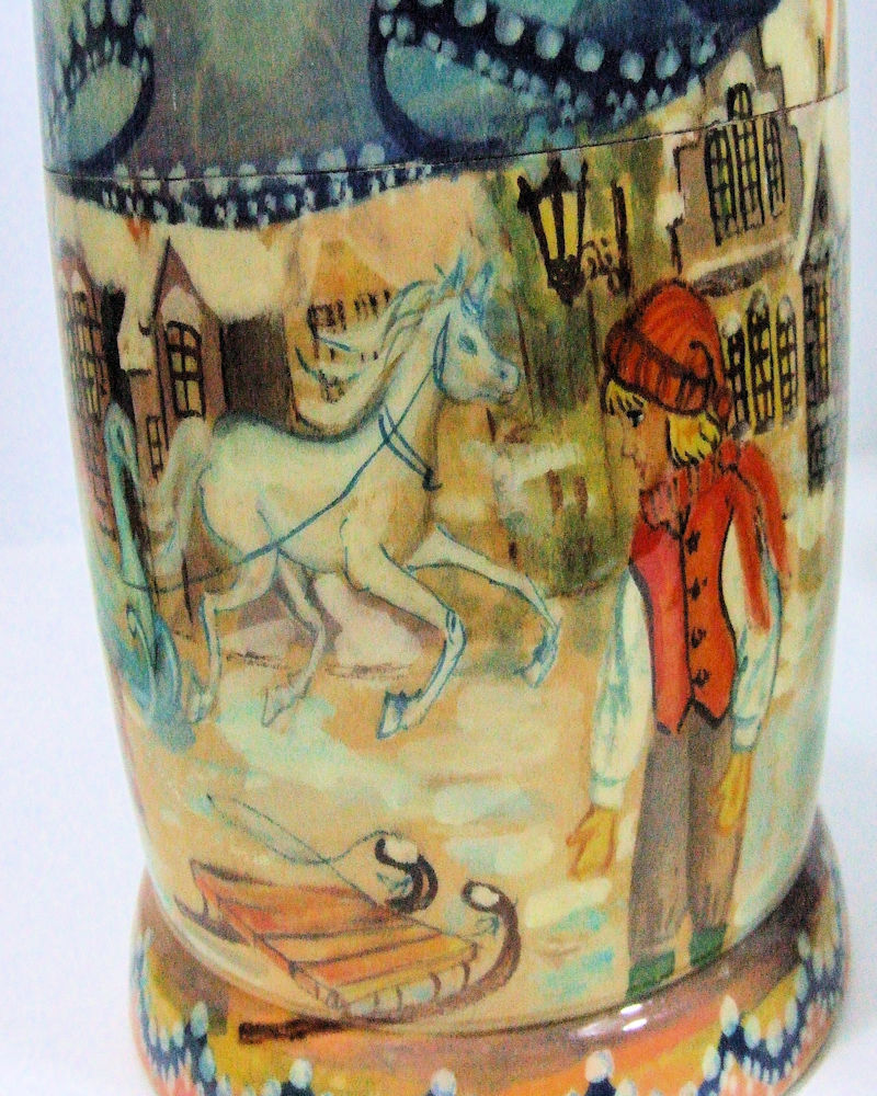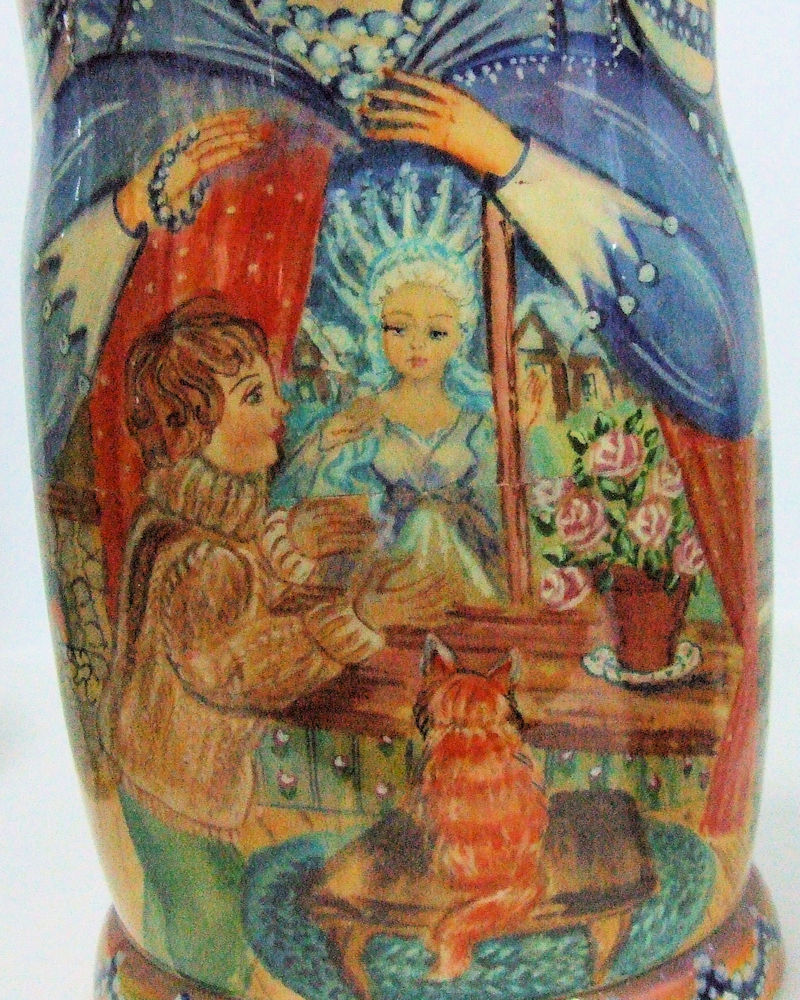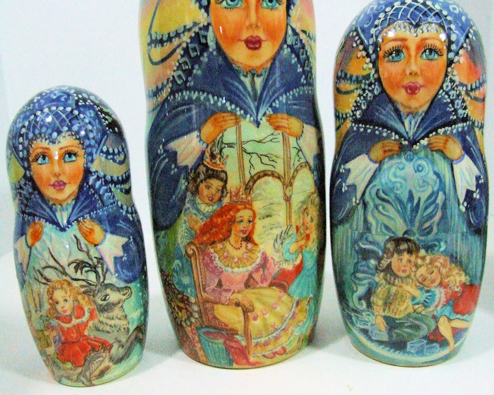 When ordering from the US, parcels may be subject to import tax and duty charges, which the buyer is responsible to pay. 15pcs Hand Painted One of a Kind Russian Nesting Doll "Snowqueen" This product data sheet is originally written in English. 15pcs One of a Kind Russian Nesting Doll of the famous Snow queen Fairy tale. Any white patches in the photos are from the camera's light reflection. The biggest doll is 13.5 inches tall and 5 inches wide. Made in Russian and signed by the artist on the bottom of the first doll 15pcs One of a Kind Russian Nesting Doll of the famous Snow queen Fairy tale. Any white patches in the photos are from the camera's light reflection. The biggest doll is 13.5 inches tall and 5 inches wide. Made in Russian and signed by the artist on the bottom of the first doll