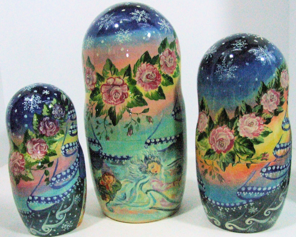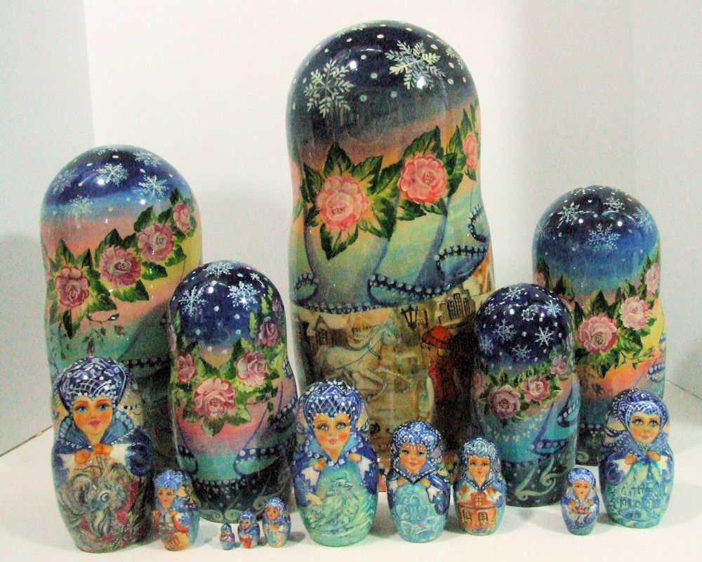 15pcs Hand Painted One of a Kind Russian Nesting Doll "Snowqueen"