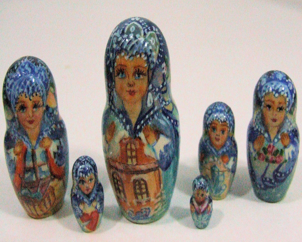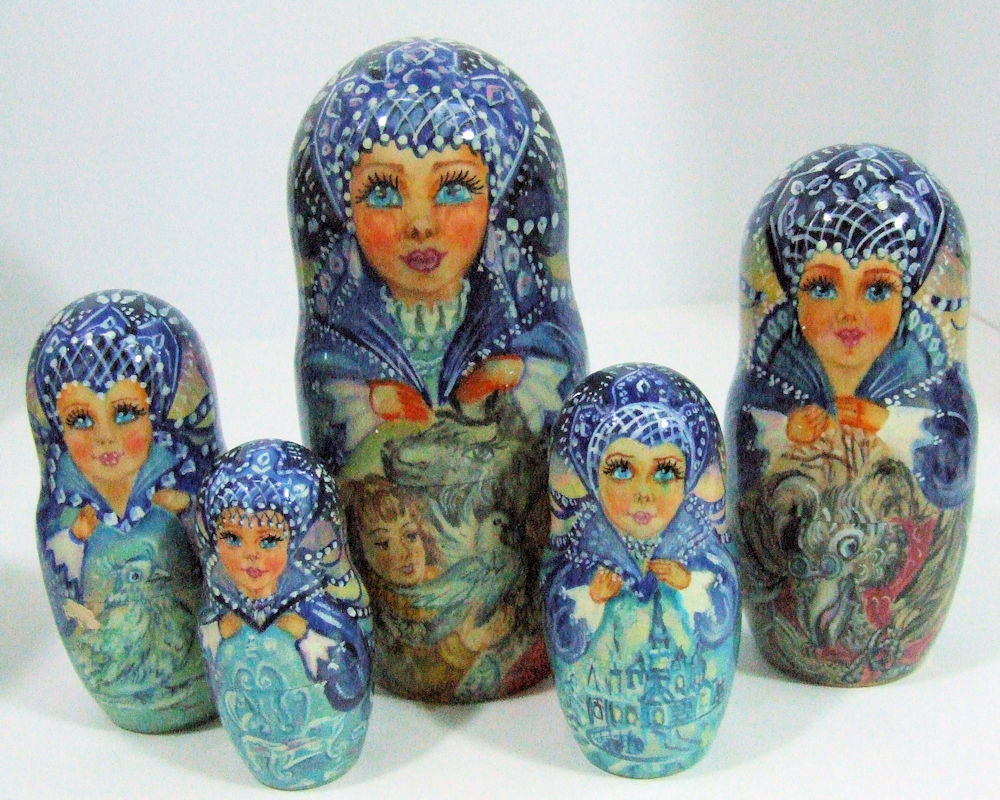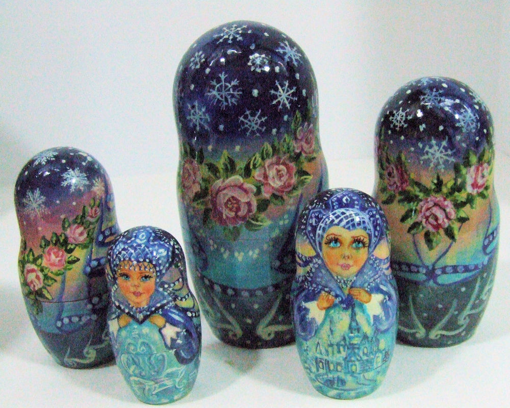Primary image for 15pcs Hand Painted One of a Kind Russian Nesting Doll "Snowqueen"