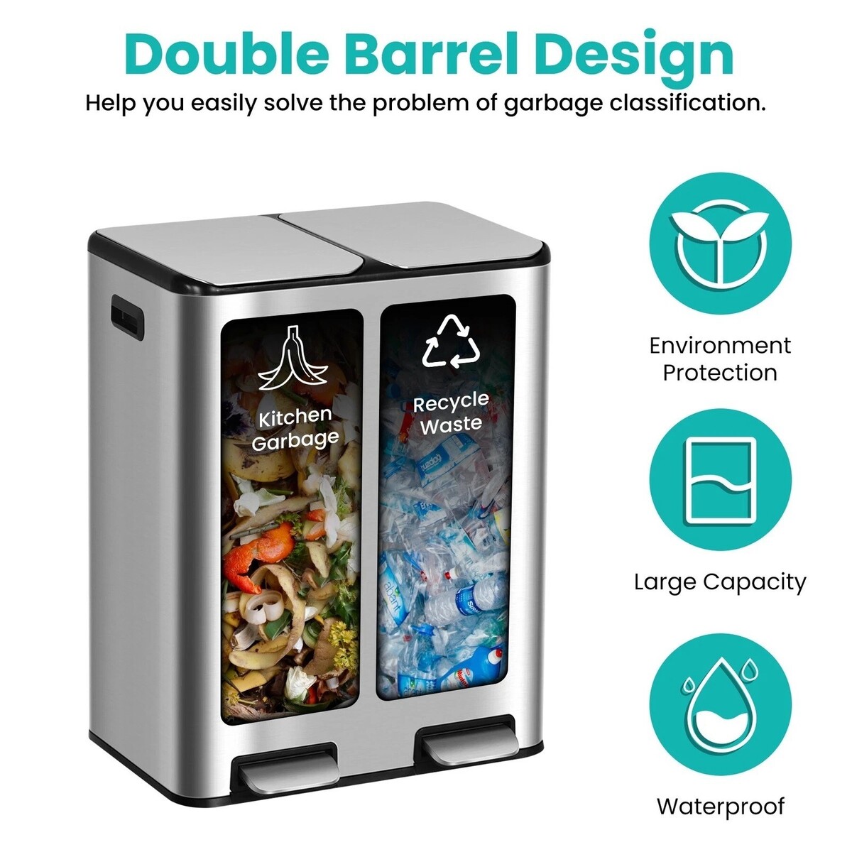 - 16 Gallon Stainless Steel Kitchen Trash Can Dual Compartment Step On Garbage Bin