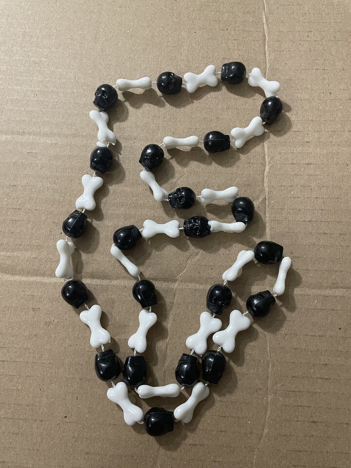 Primary image for 16 Inch Skull & Dog Bone Plastic Necklace Black and White