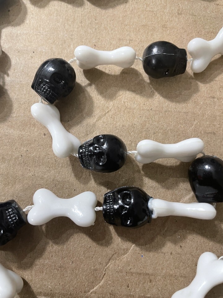 16 Inch Skull & Dog Bone Plastic Necklace Black and White
