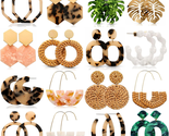 - 16 Pairs Trendy Statement Acrylic Rattan Earrings for Women-Fashion Summer Beach