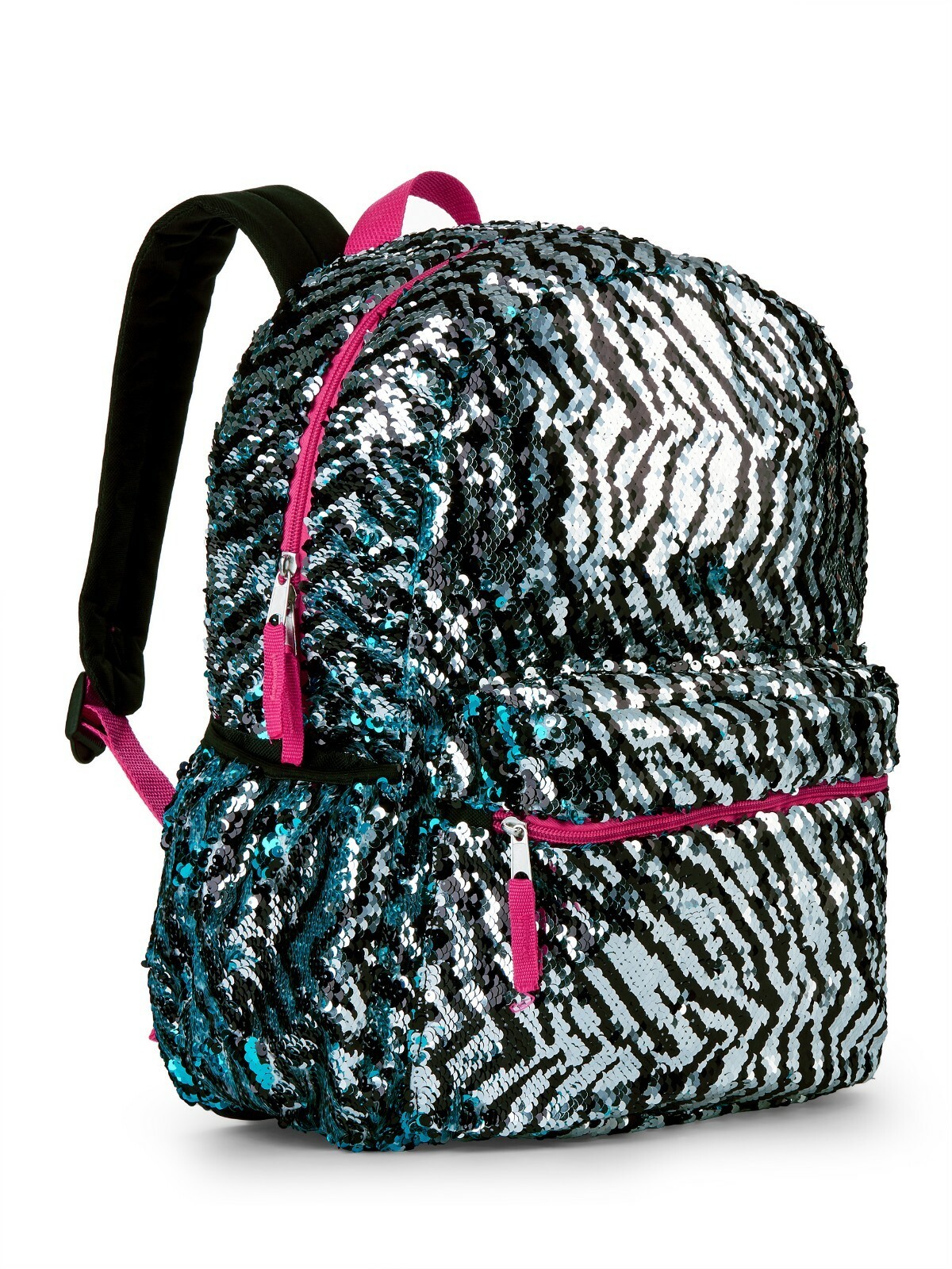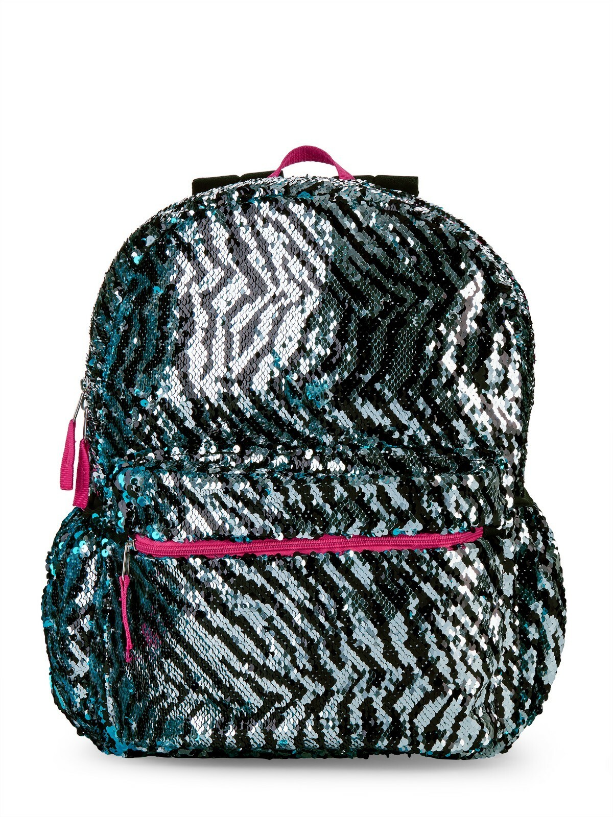 16" ~ Sequin ~ Zebra Stripes Backpack ~ Wonder Nation ~ Black ~ Silver ~ Blue