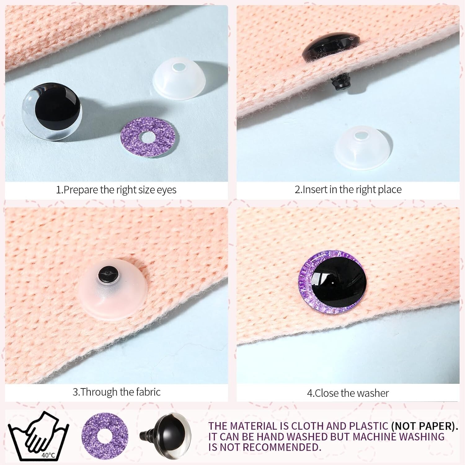 This set includes a variety of crochet safety eyes in multiple sizes (16mm to 35mm) with 84 washers, offering a colorful selection of red, green, blue, purple, gold, and pink to suit all your DIY needs. The upgraded moon-shaped eyes shine brightly and feature an easy installation with a simple threading process, adding a charming and unique personality to your dolls and stuffed animals. Crafted from high-quality, durable, and safe plastic, these eyes are non-toxic and odorless, ensuring safe play for children. Their firm washer design guarantees they stay securely in place. Ideal for crochet dolls, plush toys, and various craft projects, these eyes bring vivid expressiveness to your creations. To ensure fast and reliable delivery, we work with multiple fulfillment partners and suppliers. Depending on availability and location, your order may ship from different warehouses or arrive in packaging that varies from item to item. Tracking details are typically provided shortly after shipment, and customer satisfaction remains our top priority. Please note that due to carrier policies and regional regulations, certain items may not be eligible for delivery to specific states or territories.