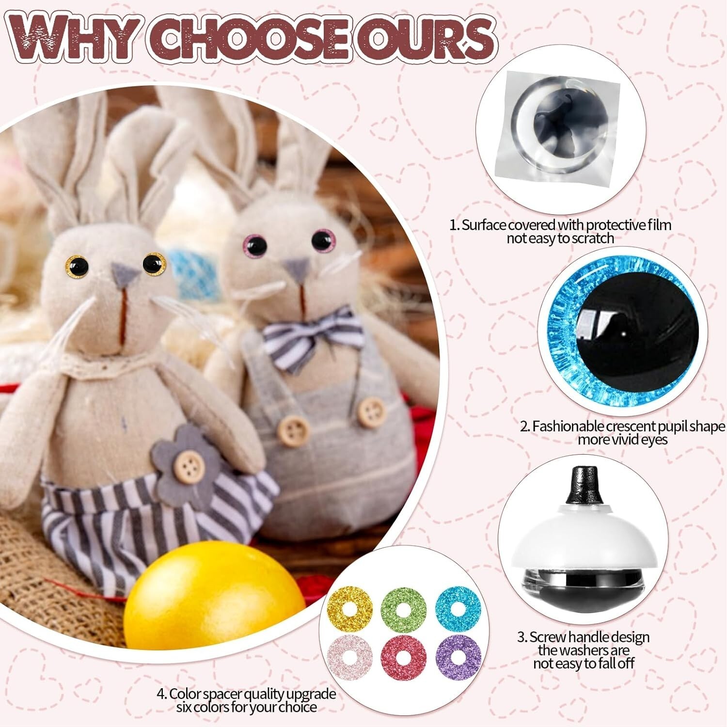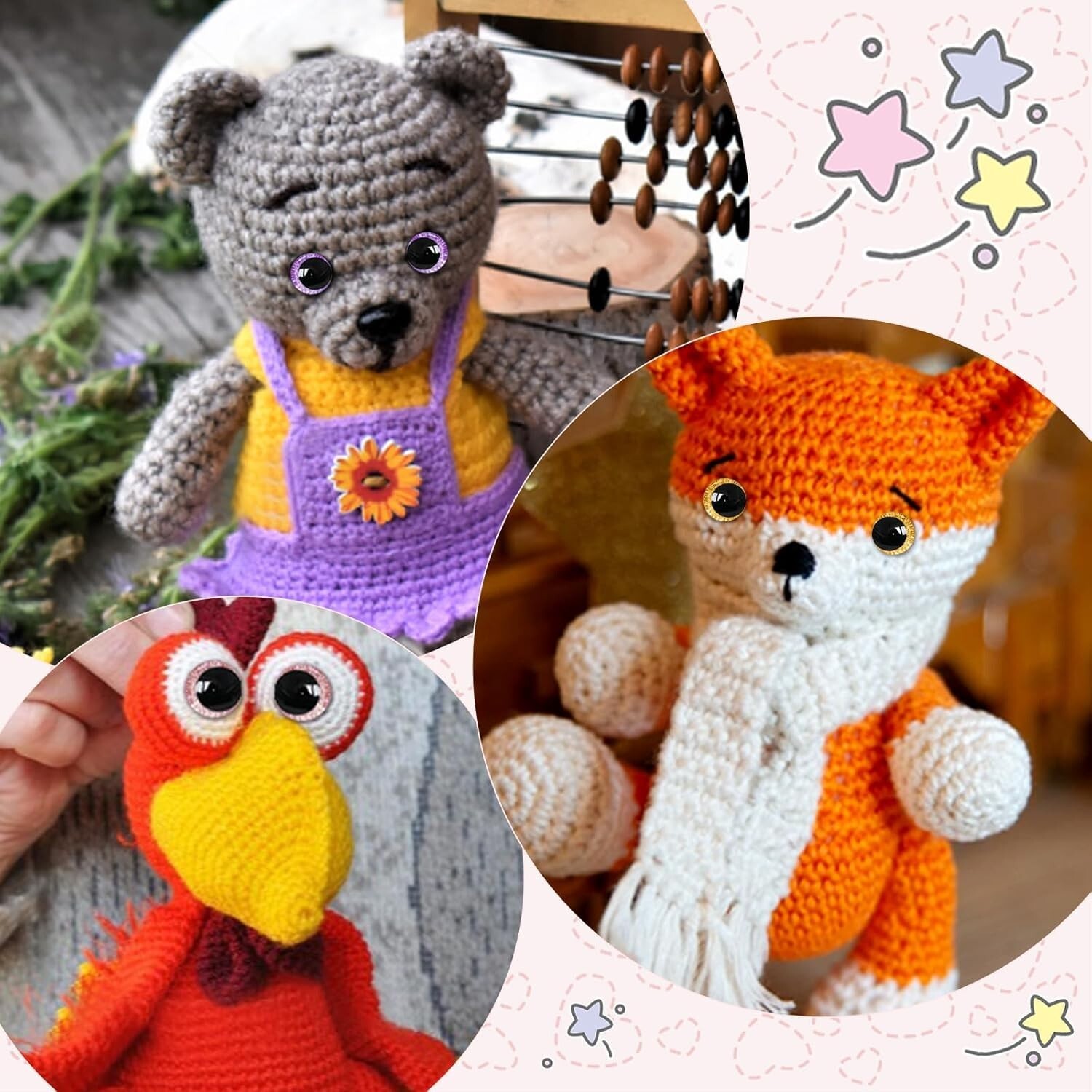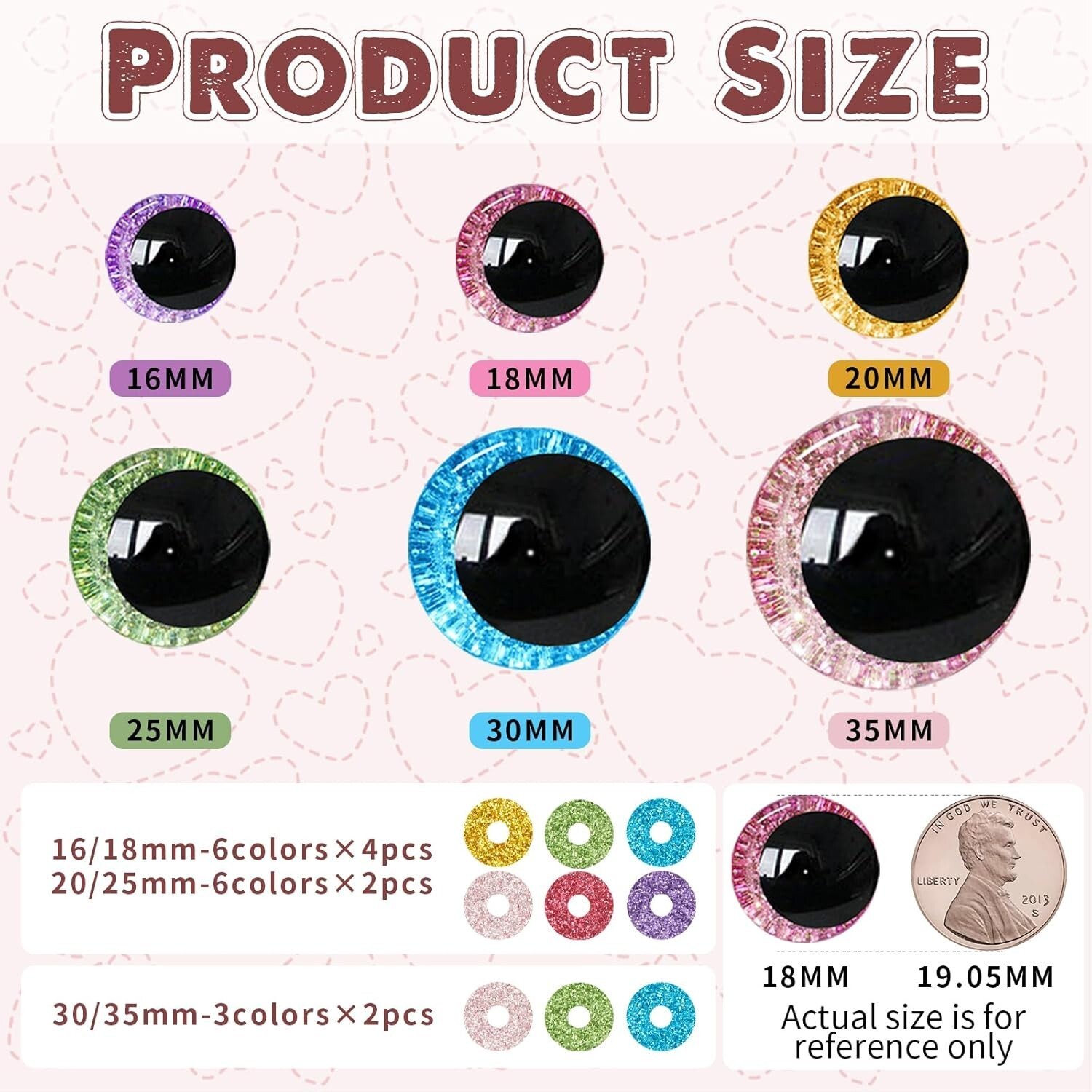 - 168pcs 16-35mm Moon Safety Eyes Set - Vibrant Colors for Crochet Projects