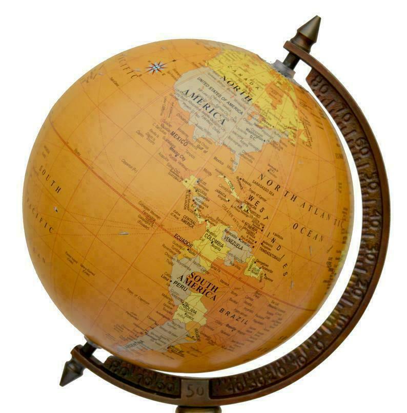 16inch Antique Brass World Globe & Map on Aluminium Stand Office Desk Decor
