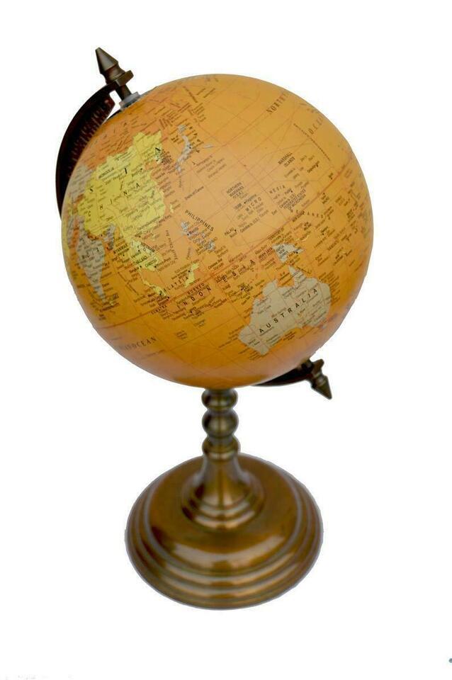 - 16inch Antique Brass World Globe & Map on Aluminum Stand Office Desk Décor Item
