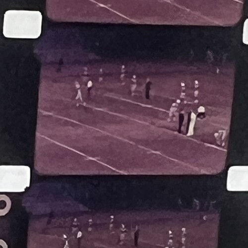 Not sure of the exact year, but the rest of the SFA football films I got are from 1961. This isn?t a football ball game. It?s three sections of film spliced together. Starts in a locker room, the it kinda looks like football practice, stands are empty, but you can see cheerleaders in background. Then there is a bunch of people standing around on the field with axe handles and confederate flags. They roll out a bell on a big cart. There is students at what seems to be a fraternity thing. Lastly is ends with clips from a basketball game. there is an African American player which is interesting as this would be the period of desegregation at SFA.