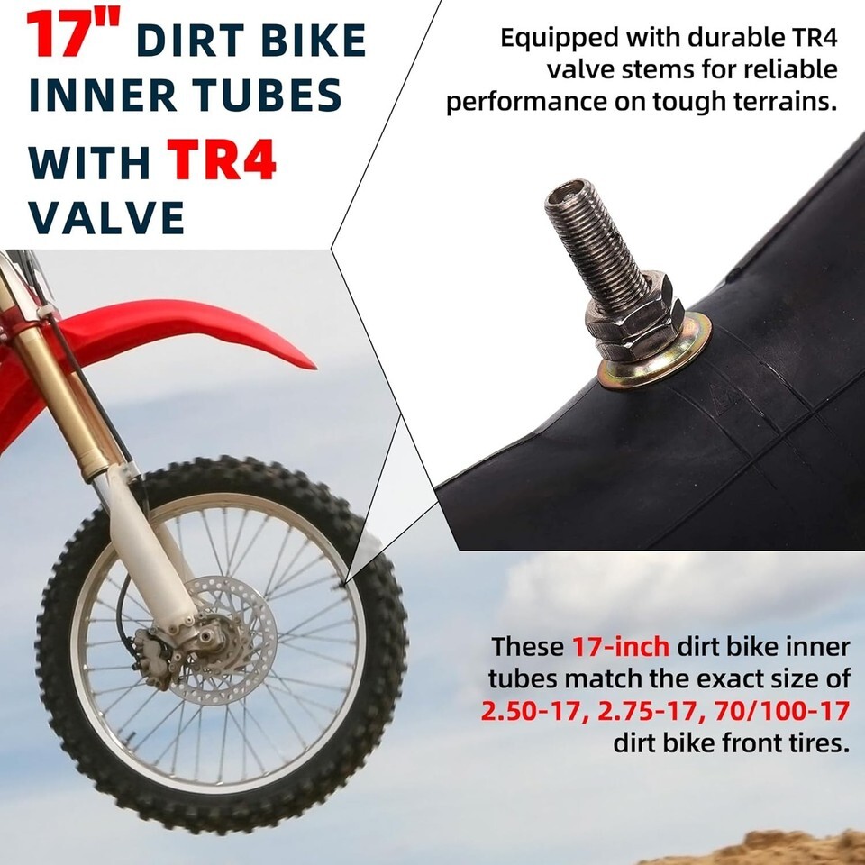 17" Inner Tubes for Dirt Bikes - 70/100-17 Heavy Duty with TR4 Valve - 1-Pack
