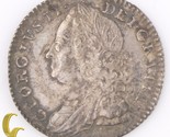 - 1758 Grand Bretagne 6 Pence Exrra Fin + XF+ George II Angleterre Argent Km