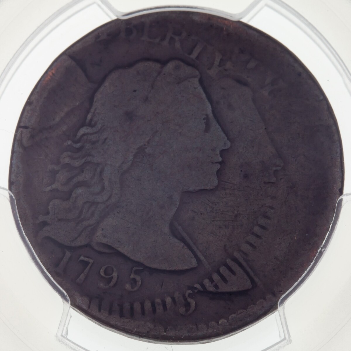 - 1795 1C Bisel Plano Error De Ceca PCGS Fine 12 Doble Tiro 2do Tiro 20% O/C