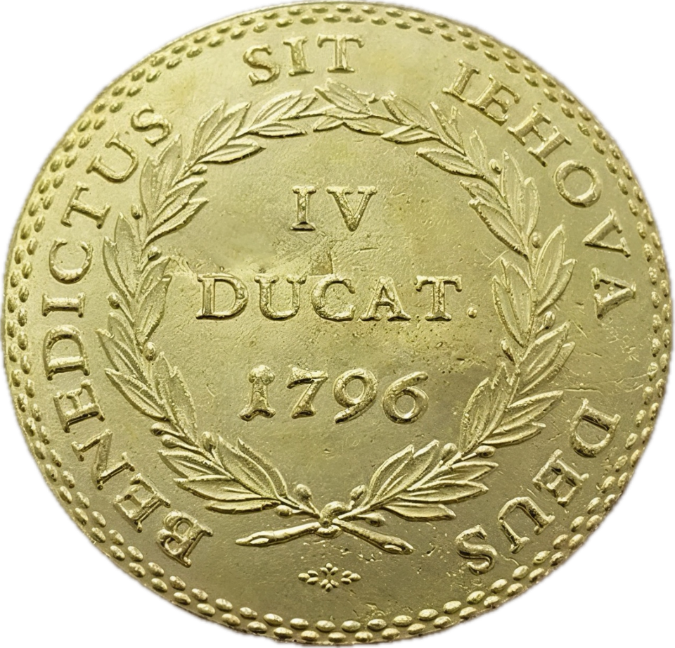 - 1796 República Bernesa 4 Ducado Conmemorativo - "Benedictus Sit Jehova Deus"