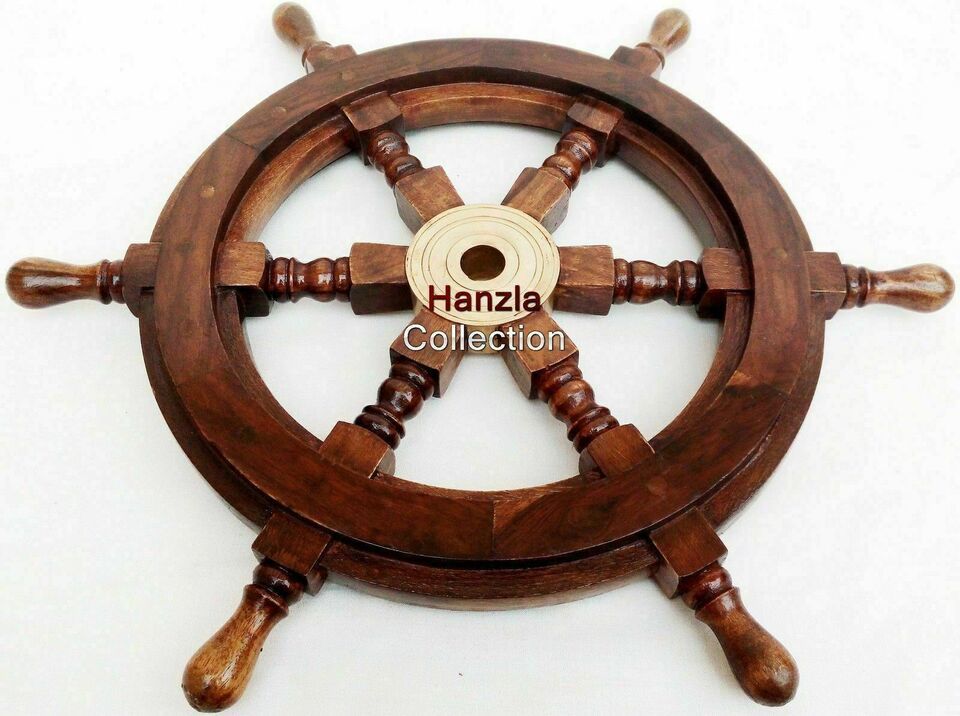 - 18" Boat Wooden Wheel Ship Steering Wheel Nautical Wall Décor item