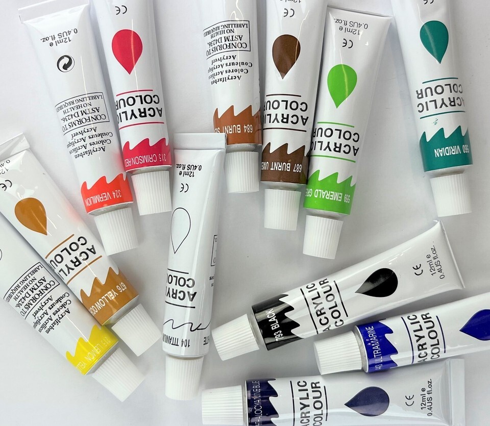 This rainbow of vibrant Non-Toxic acrylic colors are easy to use and will work fantastically on your chosen surface of canvas, paper, fabric, rock or wood. The acrylic formula is designed to give your work a lasting finish. You?ll see the difference in the smooth velvety texture and bright eye-catching results. You can put away the frustrations and messiness of oil paints and simply apply this paint directly from the tube. Acrylic paint has a fast-drying quality which allows you to apply multiple layers without smudging or blending. Approved product of EN71-3 / ASTM D-4236 (which means they are safe). These paints are easy to use and sure to inspire creativity to any artist.