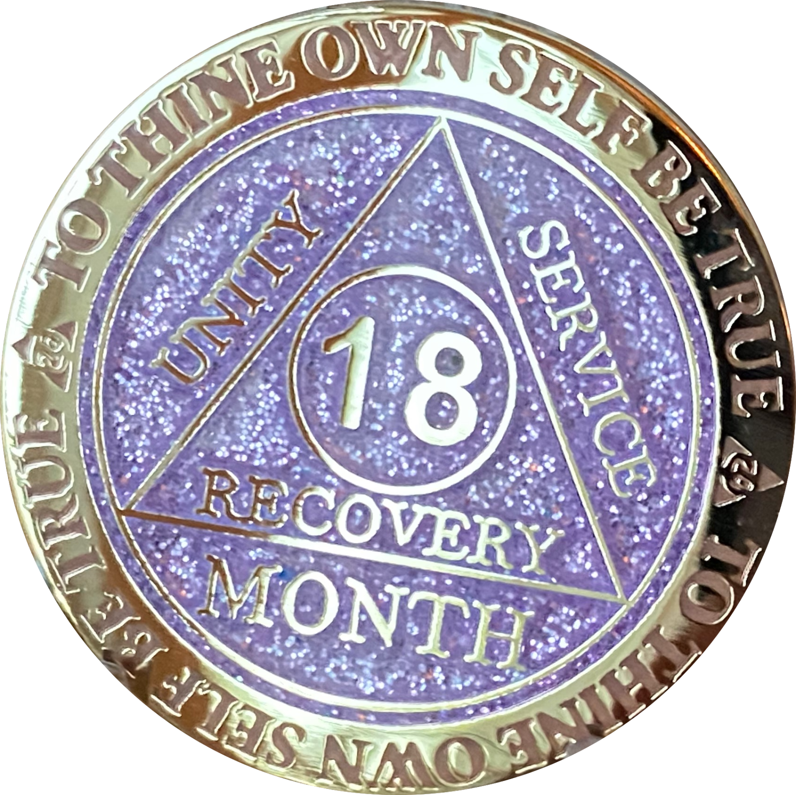 - 18 Month AA Medallion Recoverychip Reflex Purple Glitter Sobriety Chip Coin