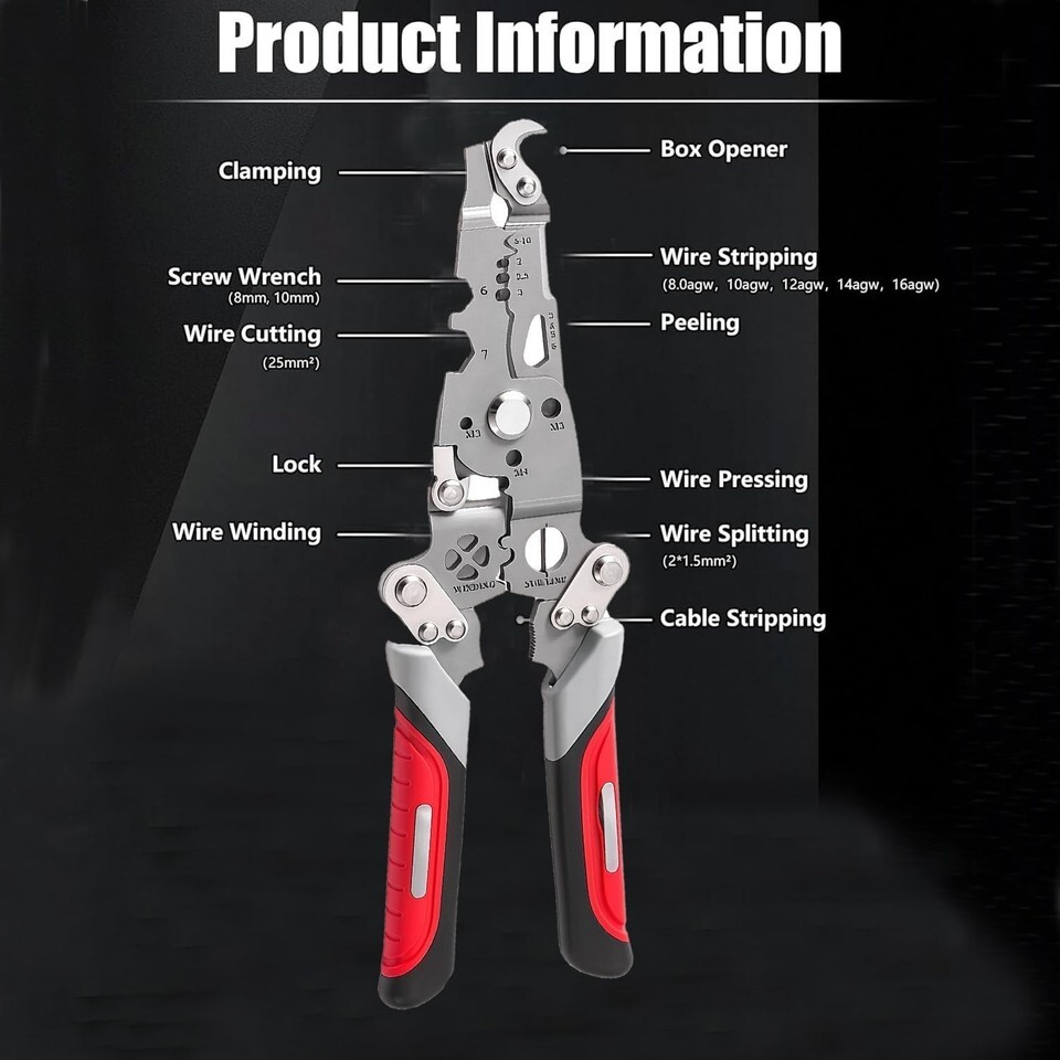 18 in 1 Foldable Wire Stripping Pliers, Multi-function Wire Stripper/Crimper/Cable Cutter, Red ? ? ? ? ? ? ? ? ? ? ? ? ? ? ? ? ? ? ? ? 18 in 1 Foldable Wire Stripping Pliers Your ultimate companion for precision and versatility in electrical work! Key Features: Precision Stripping Performance: Handles wire gauges from 0.08mm to 1.6mm with laser-calibrated stripping holes for accurate wire stripping without damaging the core. Tested for 18 AWG to 30 AWG wires with a 0.02mm tolerance. Effortless Operation Grip: Requires 60% less hand force than traditional strippers, thanks to the ergonomic TPU handles and spring-assisted opening, ensuring fatigue-free use during extended tasks. Fold Lock Mechanism: Comes with an integrated locking mechanism and included storage bag (5.7? folded) to prevent accidental openings and blade exposure, making it safe for transport. Industrial-Grade Construction: Forged from high-carbon chromium-vanadium steel, these tools have undergone a triple heat-treatment process, ensuring durability for over 50,000 cycles. Designed for Professionals: Perfectly engineered for electricians, HVAC technicians, and automotive engineers, making it indispensable for control panels, IoT installations, and industrial wiring maintenance. Why Choose Our 18 in 1 Wire Stripping Pliers? In the fast-paced world of electrical work, precision and reliability are paramount. Our 18 in 1 Foldable Wire Stripping Pliers provide unparalleled accuracy and multifunctionality, combining stripping, crimping, and cutting in one robust tool. Say goodbye to cumbersome tools and embrace efficiency with our ergonomic design that reduces physical strain. Built to withstand the of time, this tool not only offers exceptional performance but also ensures safety during storage and transport. Elevate your professional toolkit with the ultimate wire stripper - achieve excellence in every project! Shipping Free Fast Shipping - We offer free shipping to most of the USA with a normal delivery time of 3-7 days. However, due to the current situation, additional delivery time (up to 3 weeks) may be required for some items. Alternative Carriers - We may use alternative carriers (e.g. USPS, FedEx, UPS, etc.) to ensure your package arrives safely and on time. Due to the use of multiple carriers, we are unable to provide a tracking number automatically. Handling Time - Orders are processed and shipped within 1-2 business days of receiving cleared payment. Shipping Restrictions - Shipping to Alaska, Hawaii, Puerto Rico, Guam, and other US territories may incur shipping charges or delivery restrictions. Please contact us before ordering, or your order can be refunded/cancelled. State Restrictions - There may be restrictions based on your state of purchase. For example, certain items may not be shipped to California due to state regulations. Contact for Tracking Updates - If you require tracking updates or have any concerns about the delivery of your order, please feel free to contact us, and we will be happy to assist you. Return 30-Day Hassle-Free Returns - We want you to be completely satisfied with your purchase. If you are not, you can return the item within 30 days of receiving it for a full refund or exchange. Easy Return Process - To start a return, simply contact us and we will provide you with a prepaid return shipping label and detailed instructions. Restocking Fee - There are no restocking fees for returns. However, the buyer is responsible for return shipping costs if the return is not due to a seller's error. Refund Processing Time - Refunds will be processed within 5 business days of receiving the returned item in its condition. Payment We accept all major credit cards, PayPal, and Apple Pay for your convenience. Your payment information is secure and encrypted to ensure a safe and seamless transaction. Please complete your payment within 3 days of purchase to avoid any delays in shipping. Feedback Your feedback is extremely important to us. We strive to provide the best products and customer service possible. If you are satisfied with your purchase, please take a moment to leave us a positive review. If you have any concerns or issues with your order, please contact us before leaving negative feedback. We are committed to resolving any problems and ensuring your satisfaction. Contact Us If you have any questions or concerns, please feel free to out to our customer support team. You can contact us through the messaging system. We are available Monday to Friday, 9:00 am to 5:00 pm EST, and we will do our best to respond to your inquiry within 24 hours. Buy it now and enjoy a pleasant shopping experience! UPC: NA Unit Quantity: 1 Package Dimensions: 11 73 x 6 14 x 1 54 inches Batteries Required?: no Color: Red Manufacturer: krilves Item model number: bxq 8 in 1 g Material: High-carbon chromium-vanadium steel Item Weight: 0.24 kilograms Batteries Included?: no