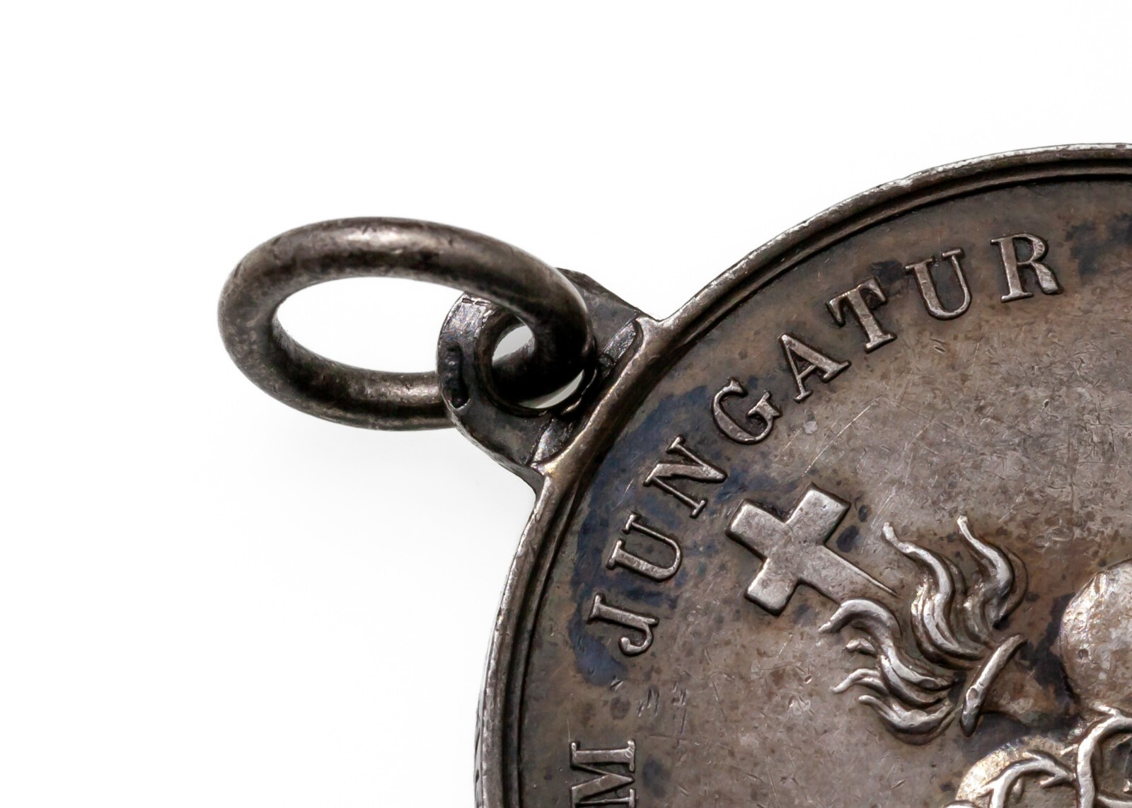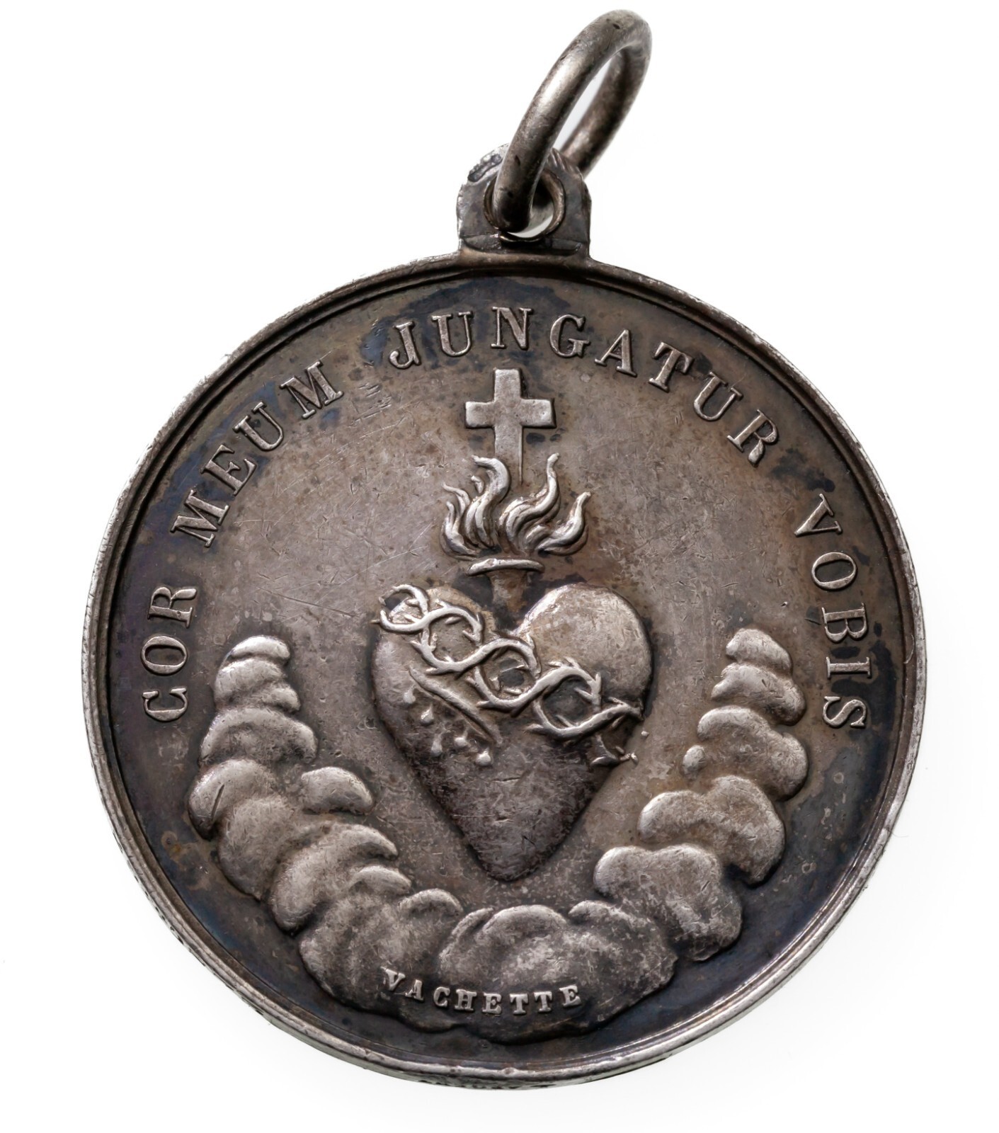 - 1800's Catholic Medal of Marie/Sacred Heart in Silver, 33 mm, 13.3 grams