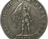 Questo dettagliato novodello della moneta da 4 franchi del 1801 della Repubblica elvetica cattura la transizione della Svizzera all'inizio dell'era napoleonica da una confederazione sciolta a una repubblica centralizzata sotto l'influenza francese. Il dritto raffigura con orgoglio una figura in piedi di un guerriero elvetico con la bandiera della nuova repubblica, che simboleggia l'unita nazionale e gli ideali rivoluzionari di liberta e ordine. Intorno al motivo centrale c'e la scritta "HELVETISCHE REPUBLIK 1801", che sottolinea la fase di breve durata ma cruciale della storia svizzera segnata da riforme repubblicane e ristrutturazioni amministrative.Il rovescio presenta l'audace denominazione "4 FRANKEN" circondata da una corona di alloro, tradizionalmente simbolo di virtรน civica e vittoria. La lettera "B" sotto la riga indica la zecca di Berna, rafforzando l'importanza dei centri regionali nella monetazione nazionale. La moneta e una fedele riproduzione di una delle emissioni piรน emblematiche della Repubblica elvetica, che riflette l?epoca turbolenta in cui la Svizzera ha bilanciato il cambiamento rivoluzionario con identita cantonali profondamente radicate. Un pezzo storicamente ricco e visivamente dominante, offre ai collezionisti una connessione tangibile con gli sconvolgimenti politici formativi della Svizzera all'alba del XIX secolo.