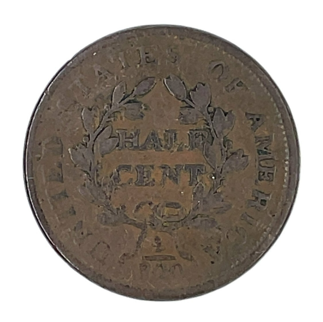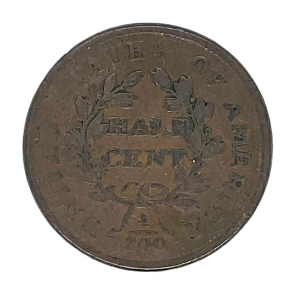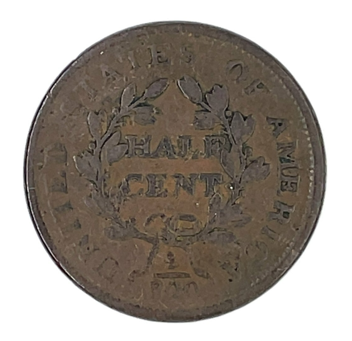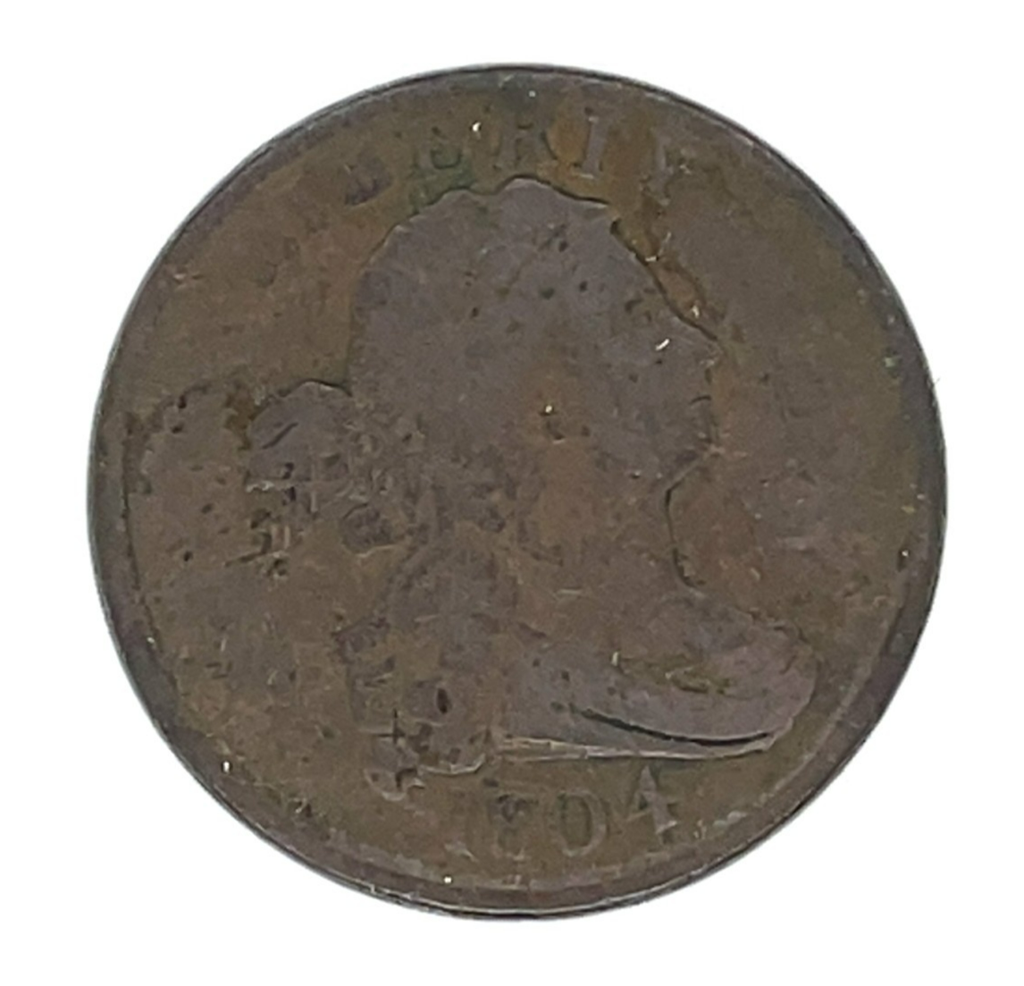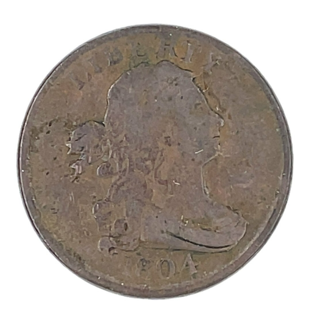 - 1804 Plain 4 No Stems 1/2C Half Cent, Good Condition, VG in Wear, Porosity