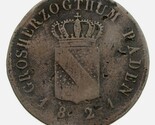 - 1821 German States Baden 1/2 Kreuzer, VF Condition, KM# 182