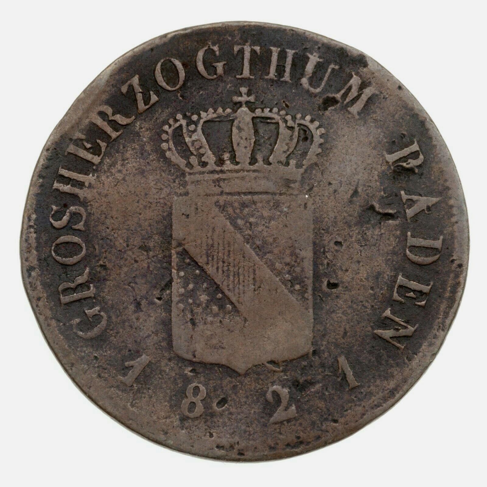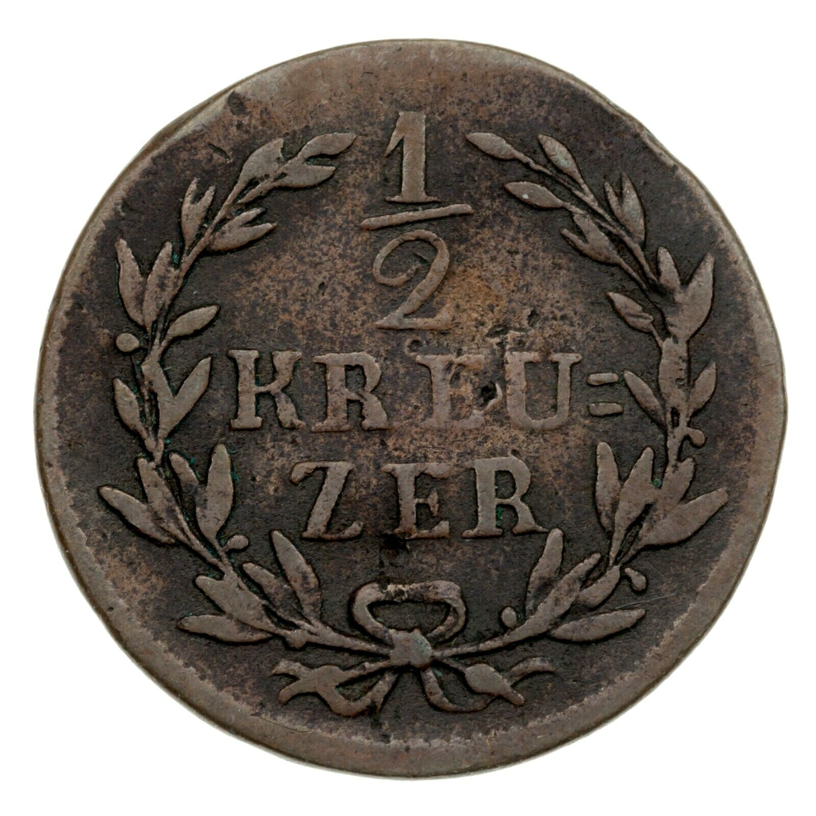 - 1821 German States Baden 1/2 Kreuzer, VF State, Km #182- show original title ...