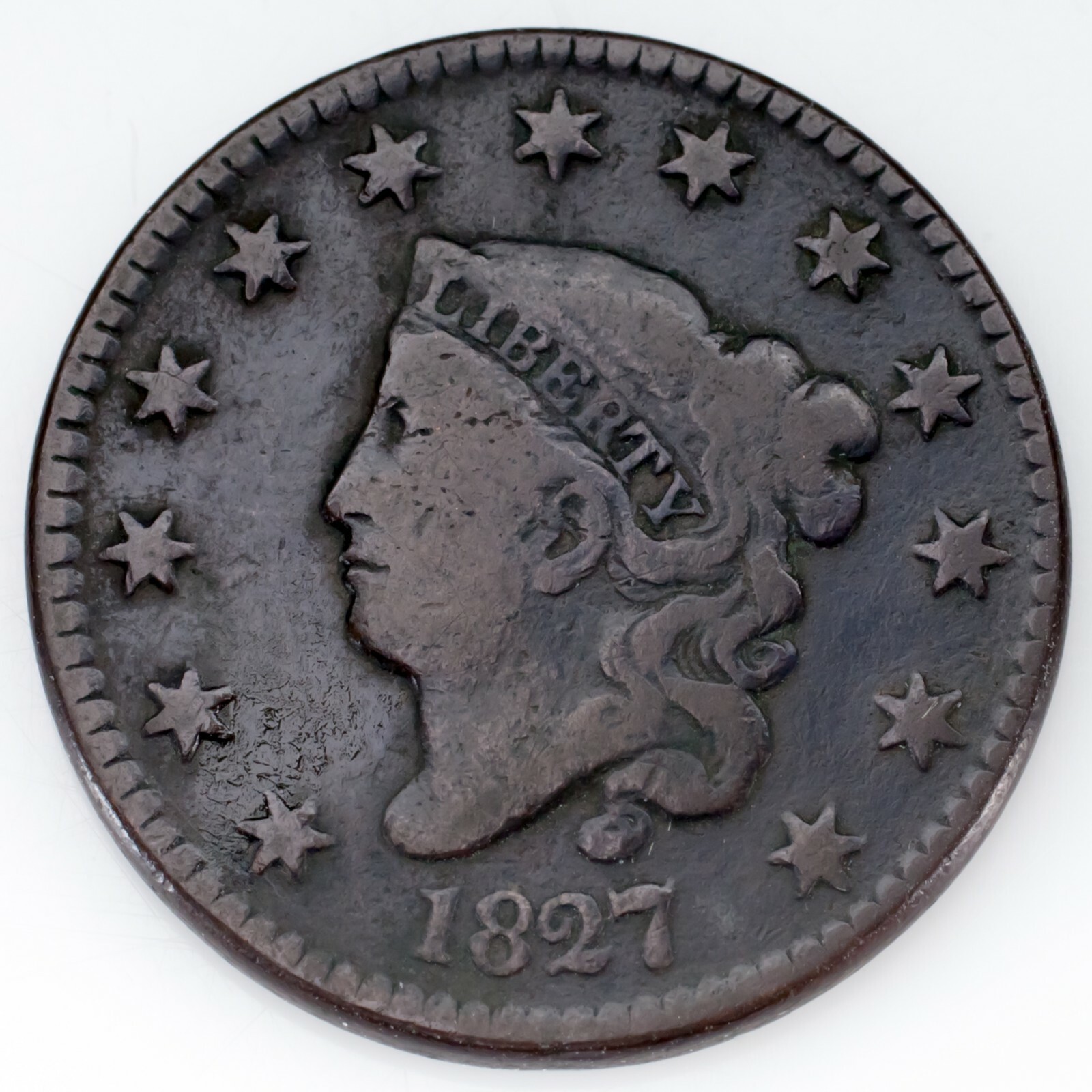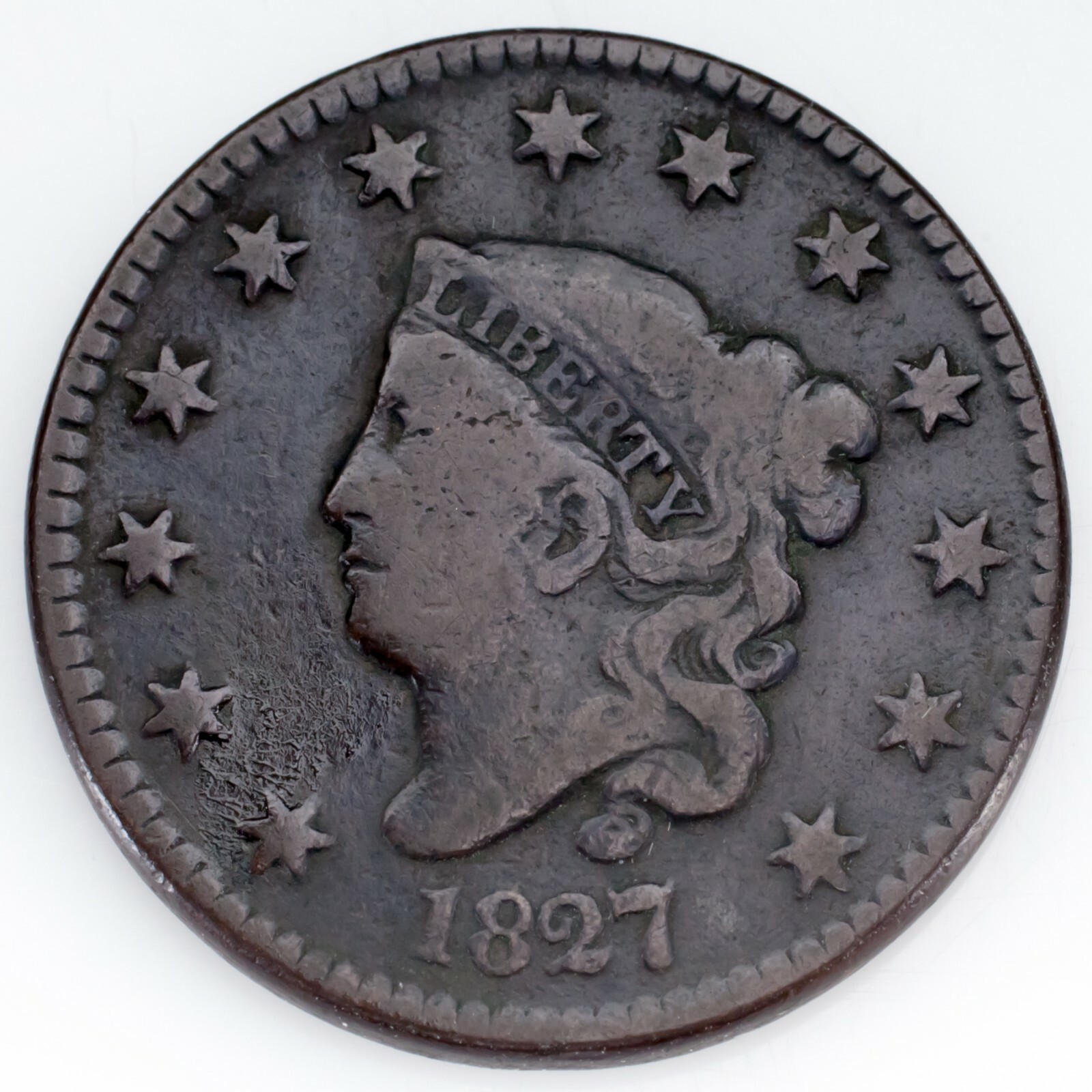 - 1827 Large Cent Very Good VG Condition, All Brown Color