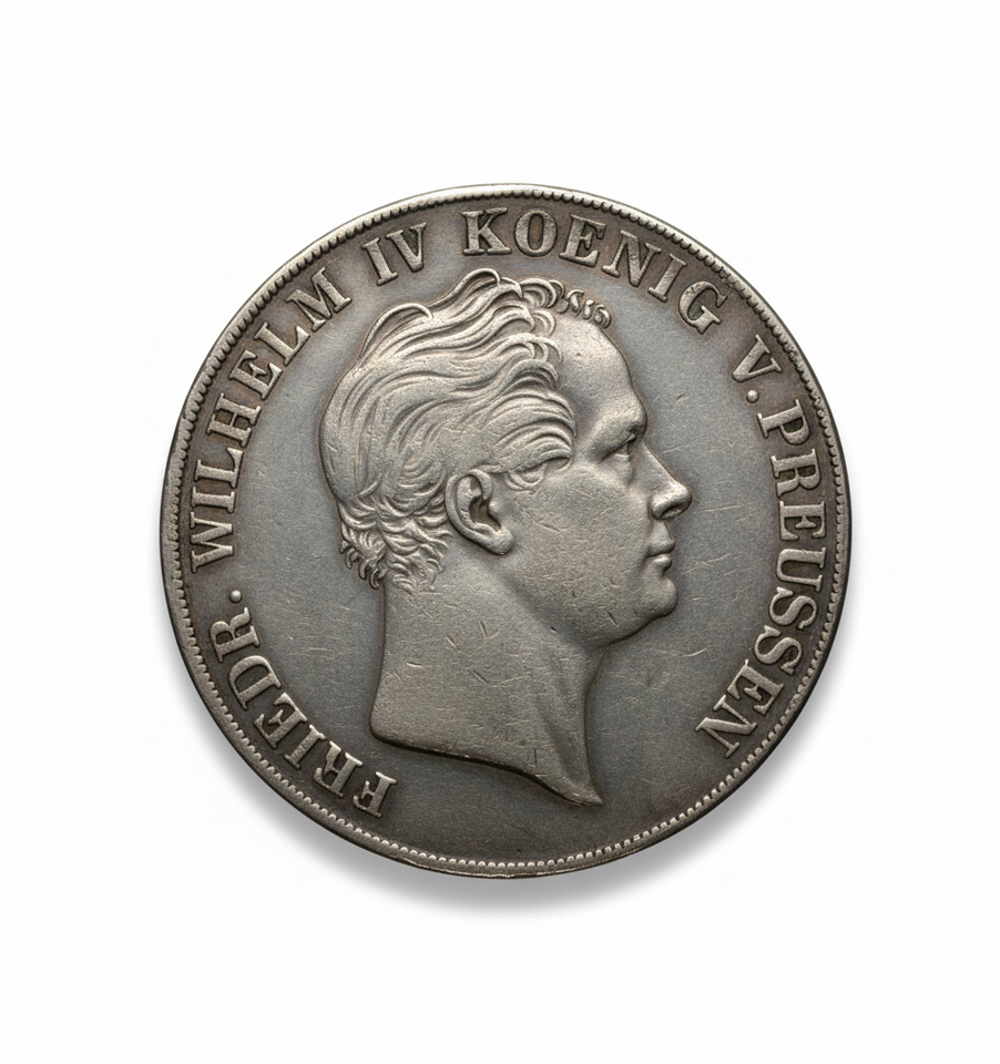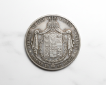 Explora una magnífica medalla de arte restringir los estados alemanes de 2 Thaler de Prusia de 1842 Federico Guillermo IV. Esta pieza historica captura la esencia de la tradicion numismatica europea del siglo XIX, con el distinguido perfil del rey Federico Guillermo IV de Prusia en el anverso. El reverso muestra con orgullo un elaborado escudo de armas, junto con inscripciones que denotan su valor como 'VII EIN F. MARK 3 1/2 FLORDEN' y '2 THALER VEREINS 18 42 MUNZE', haciendo referencia al estandar Vereinstaler de la epoca. Esta restriccion cuidadosamente elaborada sirve como un notable artículo conmemorativo y de coleccionista, perfecto para entusiastas de la numismatica y aficionados a la historia. Su calidad de prueba y detalles intrincados lo convierten en una impresionante pieza de arte. Ideal para mejorar cualquier coleccion de fichas historicas o como un regalo único. ¡Descubre este raro coleccionable vintage hoy!