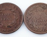 - 1845-1862 Straits Settlements Cent lot of 2 Coins, KM# 3 & KM# 6