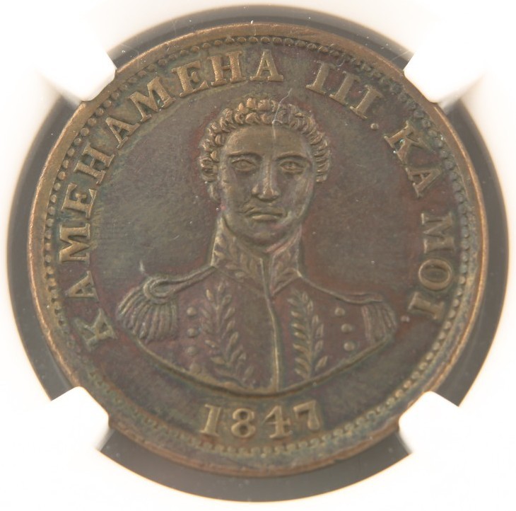 Slabbed by NGC with the title "1847 HAWAII 1C"