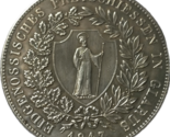 En el reverso, el diseño transmite un poderoso mensaje de unidad e identidad suiza. Una cruz suiza central irradia entre banderas y rifles cruzados, rodeada por una corona de laurel y coronada por un par de manos juntas, un emblema atemporal de solidaridad confederada. La denominacion "40 Btz." (Batzen) marca esto como una pieza de valor simbolico y nocional. Si bien este ejemplo es una restriccion moderna destinada a coleccionistas, reproduce fielmente el espíritu del nacionalismo helvetico del siglo XIX y la tradicion duradera de puntería en la cultura cívica suiza. Ofrece una rica interseccion de numismatica, historia y patriotismo.