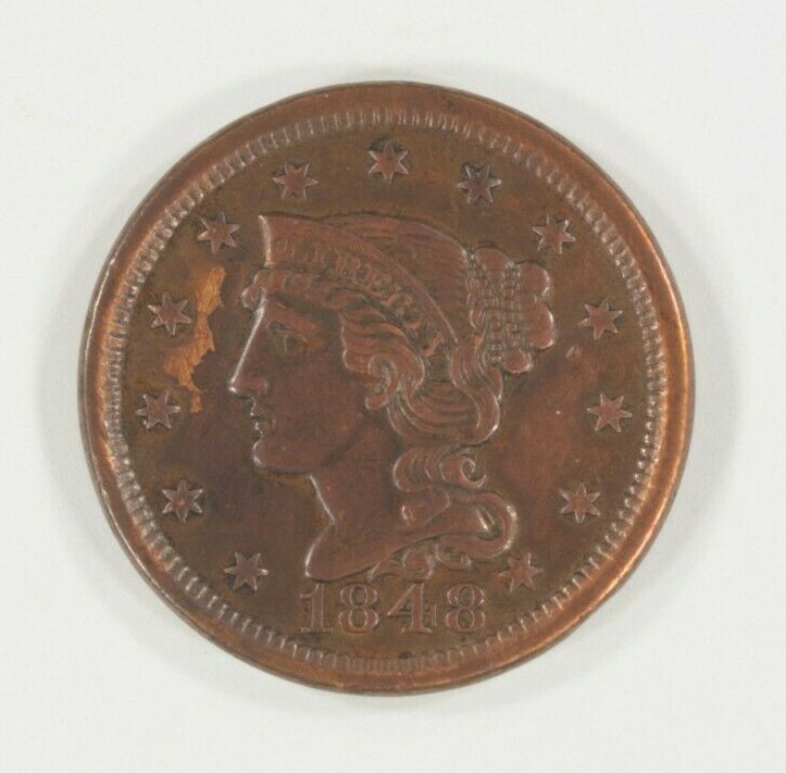 - 1848 Large Cent in XF Condition, Brown Color, Old Cleaning