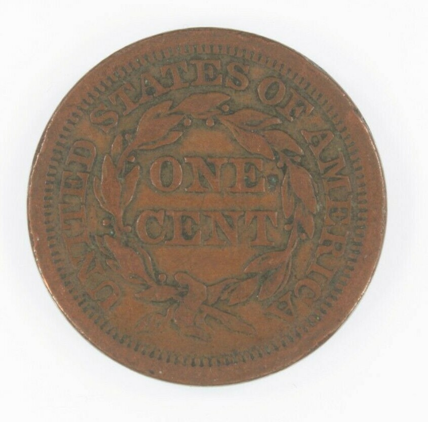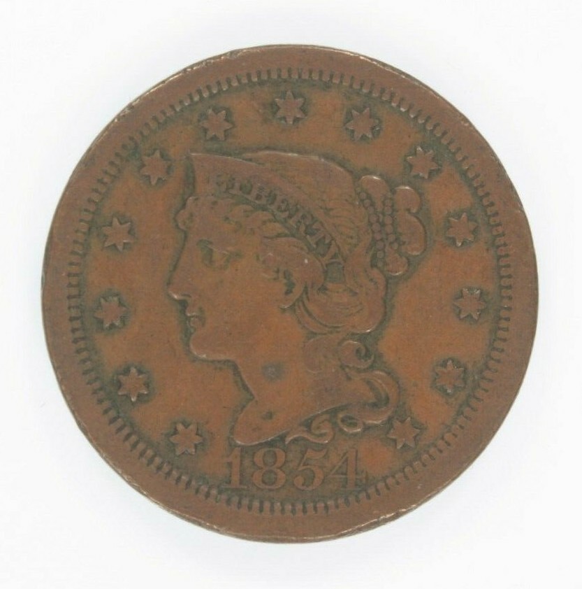 - 1854 1C Large Cent in VF Condition, All Brown Color, Nice Detail