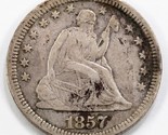 - 1857 25C Seated Liberty Quarter in Fine+ Condition, Liberty Bold and Clear