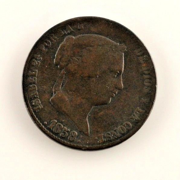 - 1858 Spain 25 Centimo (VF very Fine Plus Condition