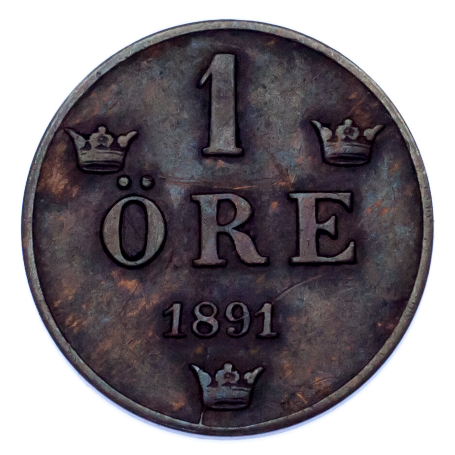 1891 Sweden 1 Ore - Condition: Extra Fine - KM# 750