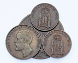 - 1873-1891 Sweden 1 & 5 Ore Coin lot of 4 (VF-XF) KM # 728, 736, 750