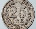 - 1881-EB Sweden 25 Ore Silver Coin in XF Condition KM #739