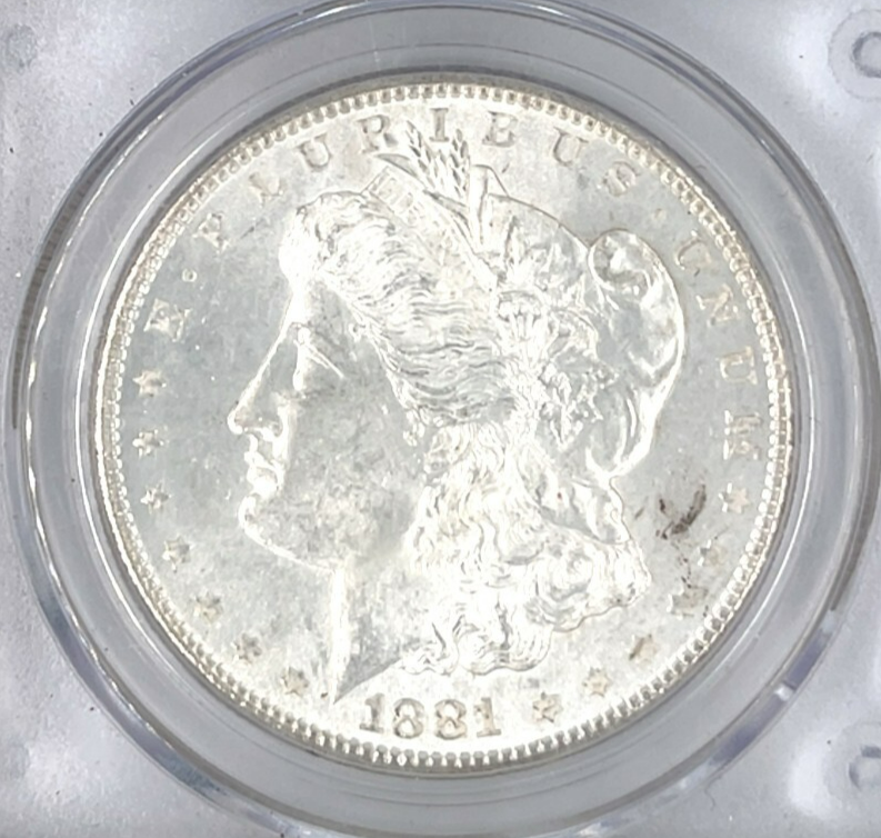 - 1881-S Silver Morgan Dollar Coin Graded by PCGS as MS63